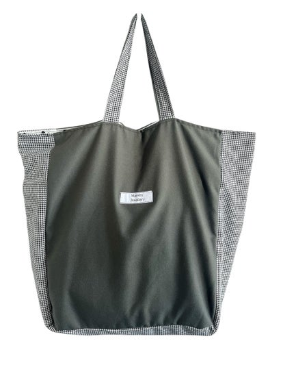 Nooit meer een saaie tas of een tas die iedereen al heeft? kies dan voor deze mooie eigen ontwerp totebag in olijf groen met Pied-De-Poule stof aan de zijkanten en onderkant. Deze shopper biedt genoeg ruimte voor al je benodigdheden of je nu een drukke dag hebt of een ontspannen uitje, deze tas is super handig. De tas is gemaakt in een fijn formaat waardoor al jouw handbagage mee te nemen is en ook handig als werktas gebruikt kan worden.
