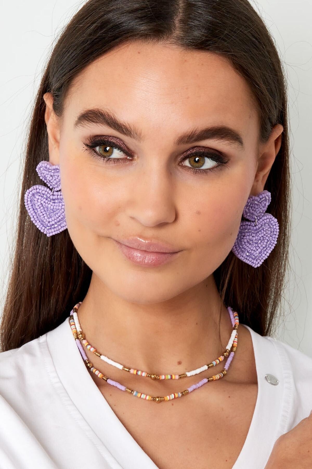 Shop deze prachtige oorbellen in de vorm van twee hartjes met kraaltjes. Deze prachtige oranje oorbellen zijn gemaakt van glaskralen, stof en Stainless Steel en heeft een afmeting van 6 cm en wegen 9g.