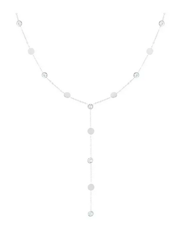 Prachtige lange zilveren ketting met witte strass steentjes. De ketting is gemaakt van stainless steel in combinatie met strass steentjes. De ketting heeft een verstelbare sluiting waardoor je de ketting vanaf 39 tot en met 44 cm kunt dragen. Je shopt deze ketting in het goud - goud/multi - zilver.