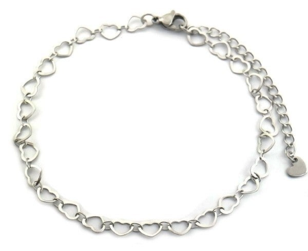 Deze te leuke zilveren enkelband met geschakelde hartjes is perfect voor de zomer om jou outfit mee op te fleuren. Leuk om te combineren met meerdere zilveren of gekleurde enkel bandjes.