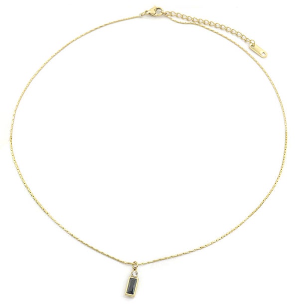 Deze mooie gouden ketting komt met een zwart bedeltje en een klein diamanten steentje erboven. Super mooi te combineren voor een speelsere look. Natuurlijk ook leuk om voor een subtiele look te gaan.