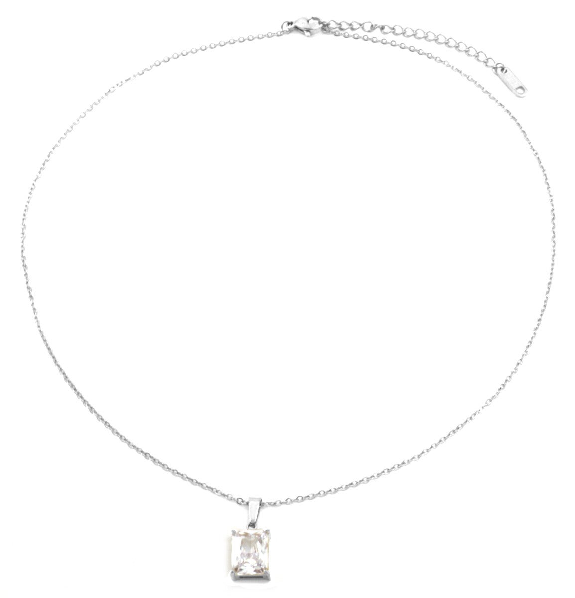 Deze mooie stainless steel ketting heeft een hanger met wit/doorzichtige steen. Wij zijn helemaal fan van deze ketting die op superveel manieren gestyled kan worden.Dankzij de verstelbare sluiting kan het sieraad gedragen worden vanaf 40 tot en met 45 cm.
