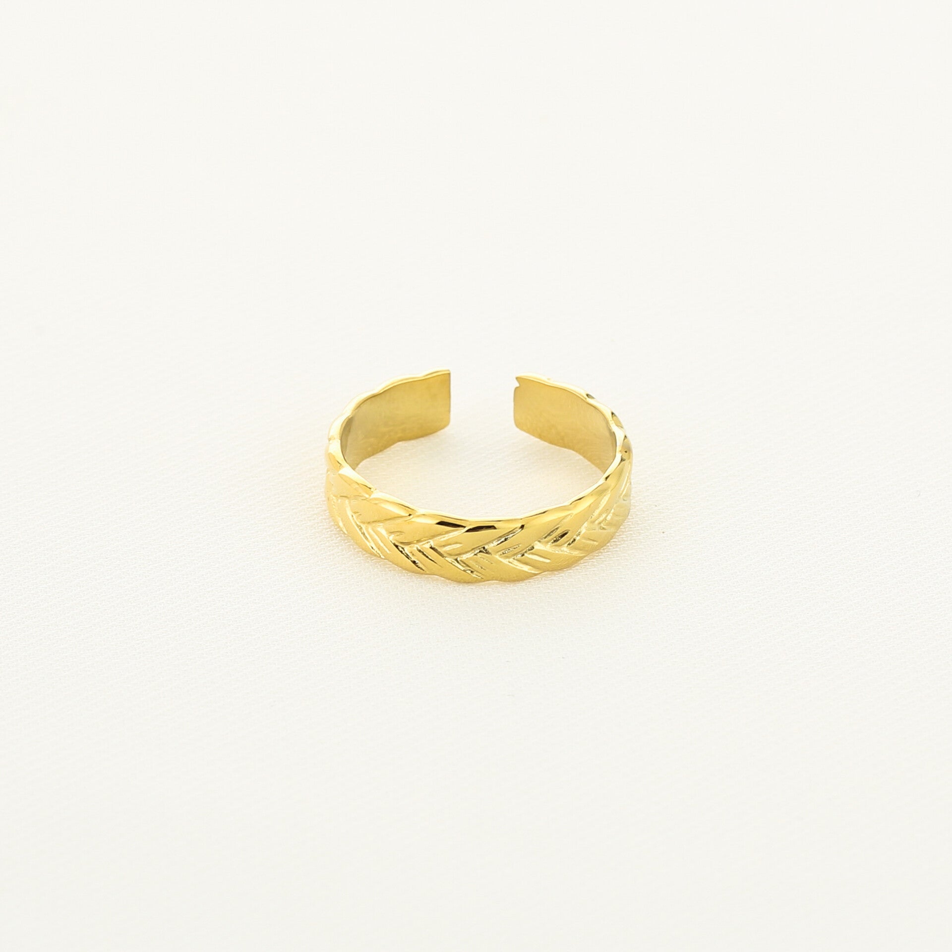 Deze bijzondere ring is gemaakt van stainless steel waardoor deze niet verkleurd. De ring heeft een vlecht patroon en is verstelbaar. Deze ring is bijna 0,5cm breed.