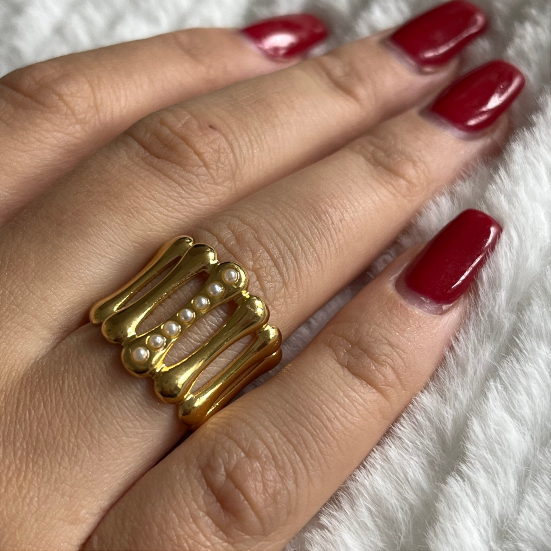 Deze mooie ring is gemaakt van stainless steel waardoor deze niet verkleurd. De ring heeft leuke parels en is verstelbaar. Deze ring past om iedere vinger!