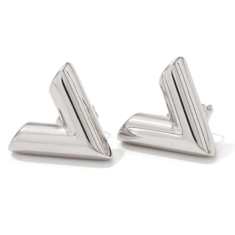 Luxury inspired V earrings silver