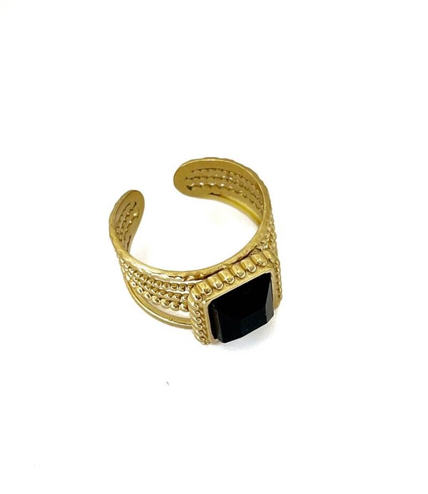 Deze mooie ring is gemaakt van stainless steel waardoor deze niet verkleurd. De ring heeft een vierkante zwarte steen en is verstelbaar. Deze ring past om iedere vinger!