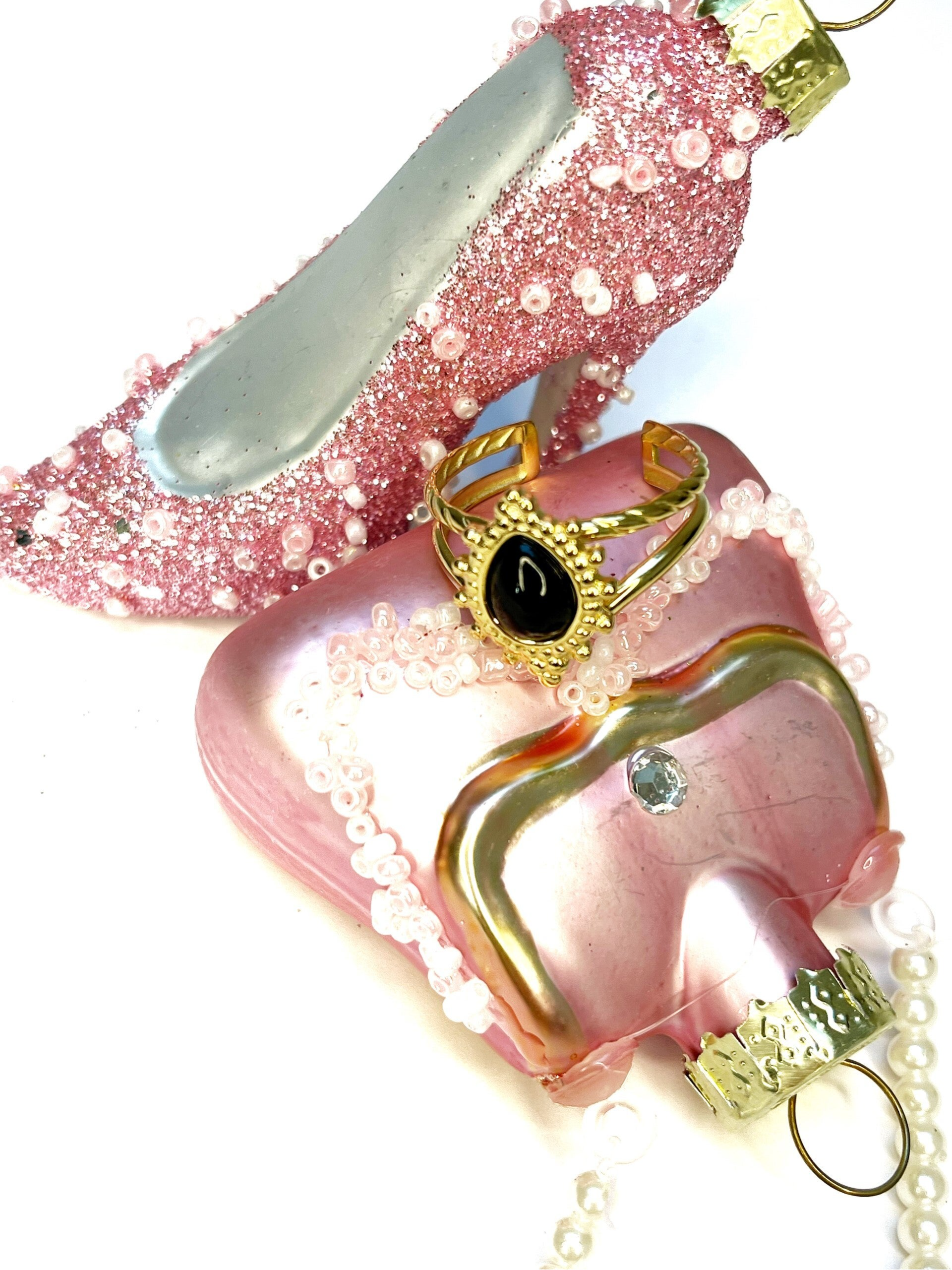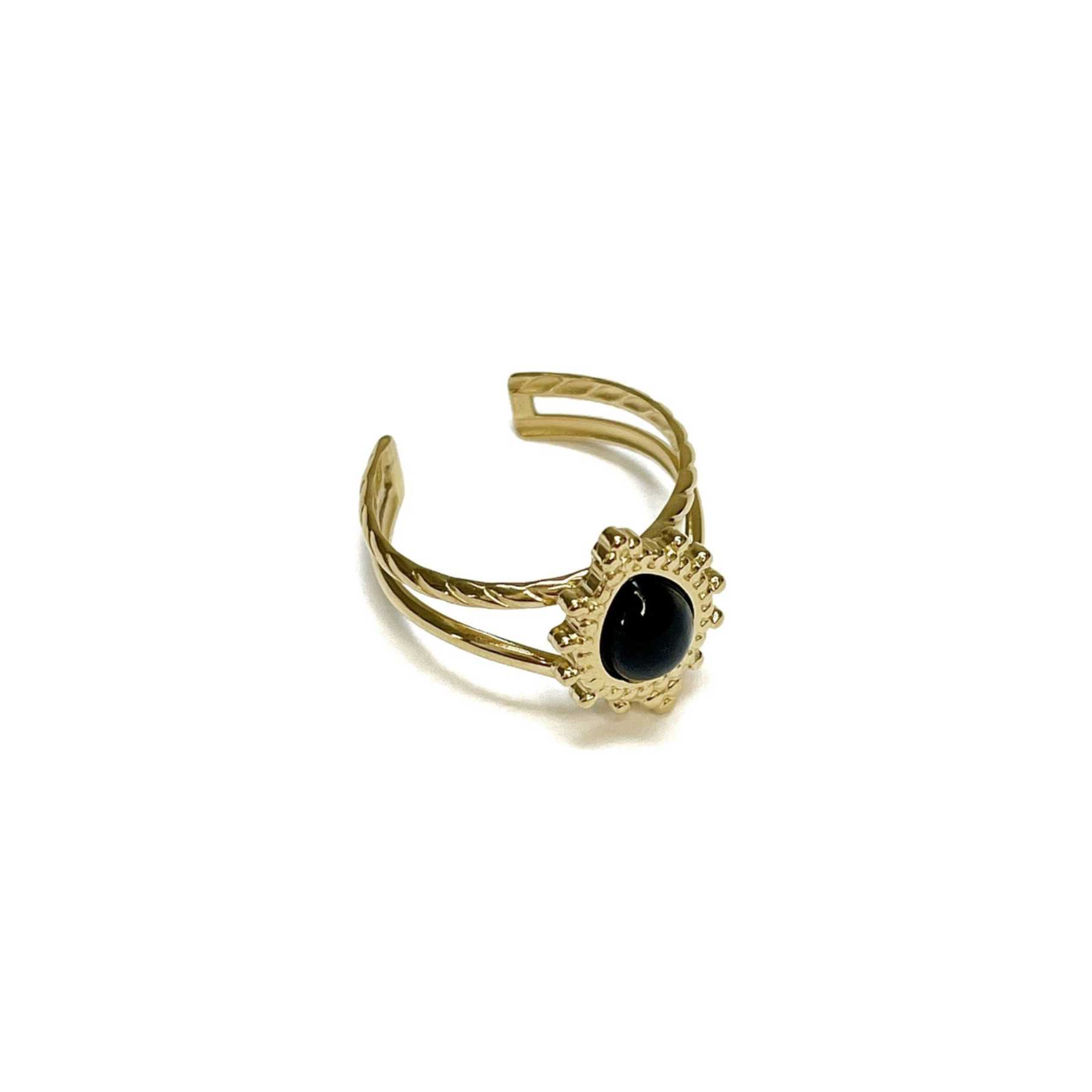 Deze mooie ring is gemaakt van stainless steel waardoor deze niet verkleurd. De ring heeft een zwarte ovale/druppelvormige steen. Deze ring is one size!