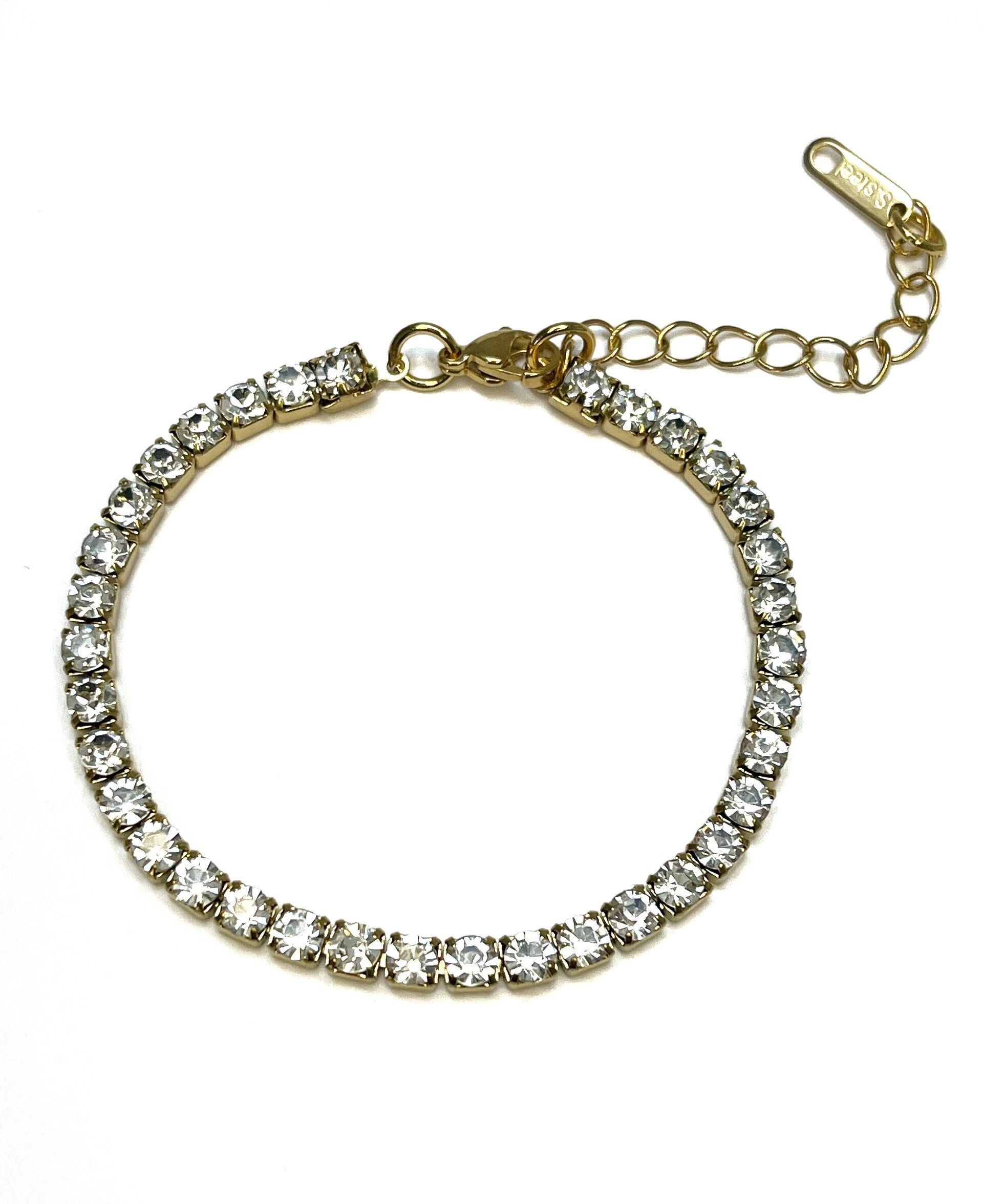 Deze mooie stainless steel armband heeft een feestelijke uitstraling door al die mooie zirkoon steentjes. Style je outfit helemaal af en shine! Wij zijn helemaal verliefd op deze mooie armband! Lengte verstelbaar van 17cm tot 22 cm.