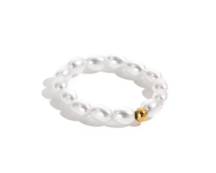 Deze leuke ring is van elastiek en past dus altijd. De ring heeft leuke parels en een klein gouden bolletje.