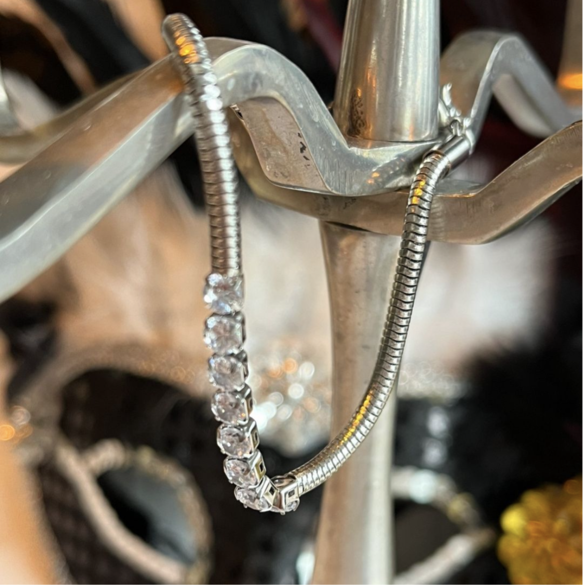 Deze armband is van stainless steel, heeft een mooie ronde schakel en in de midden zitten prachtige zirkoon steentjes. Combineer met andere mooie armbanden voor een leuk stylish of chique look . De armband heeft een verstelbare sluiting is te dragen van 17 tot 20cm.