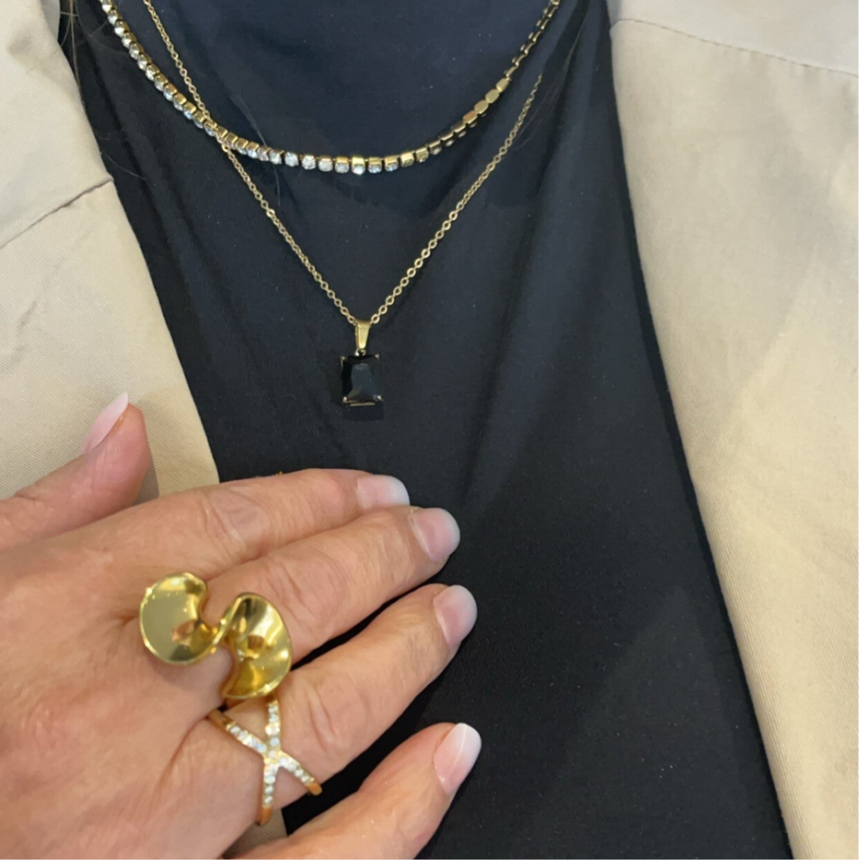 Deze mooie stainless steel ketting heeft een hanger met zwarte steen. Wij zijn helemaal fan van deze ketting die op superveel manieren gestyled kan worden.Dankzij de verstelbare sluiting kan het sieraad gedragen worden vanaf 40 tot en met 45 cm.