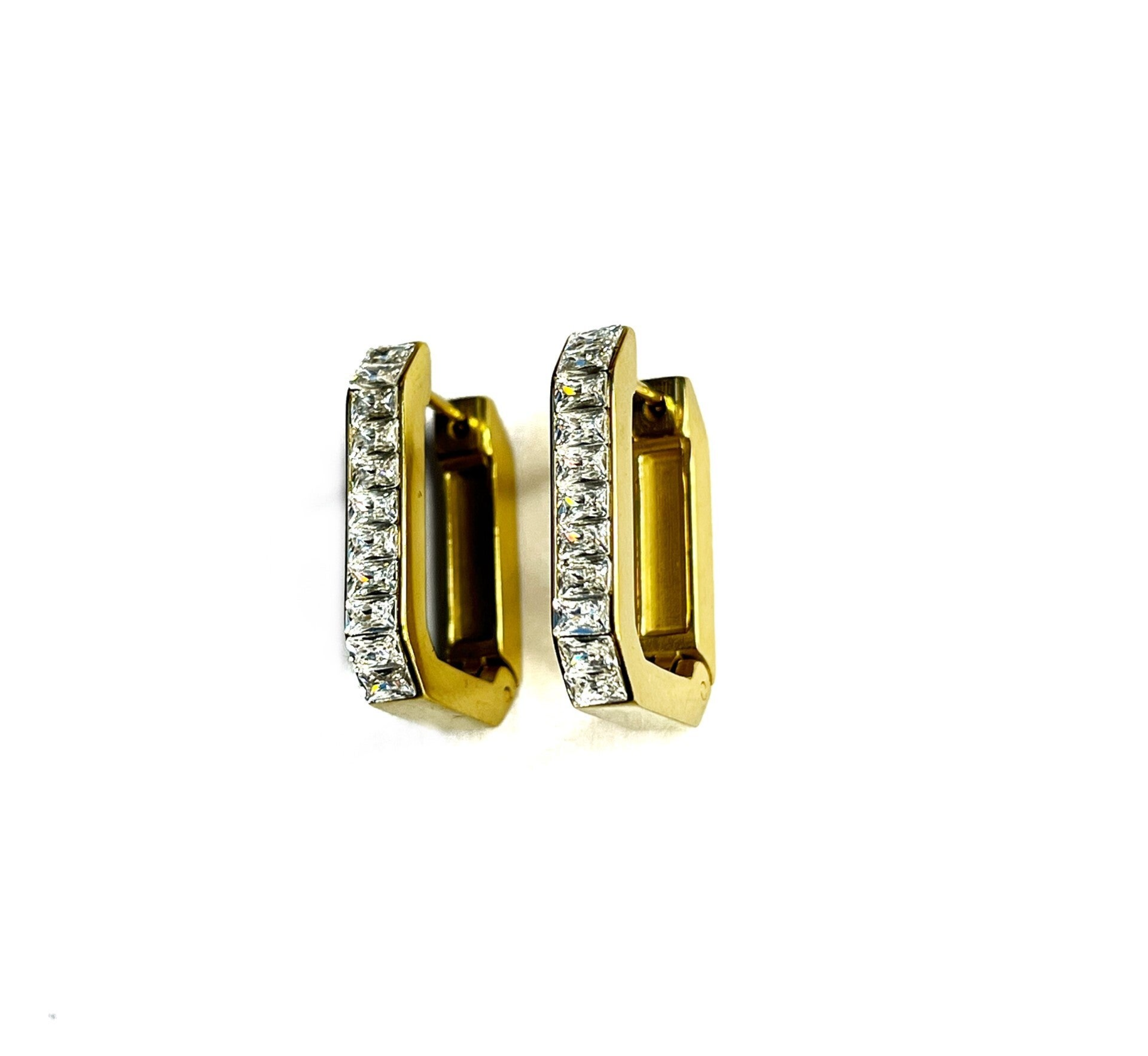 Deze super mooie oorbellen hebben een leuk detail met zircoon stenen. Deze oorbellen zijn overal mee te combineren zo wel chique als casual te stylen. Gemaakt van stainless steel en zijn licht van gewicht. Afmeting 2,1cmx1,68cm en weegt 6 gram