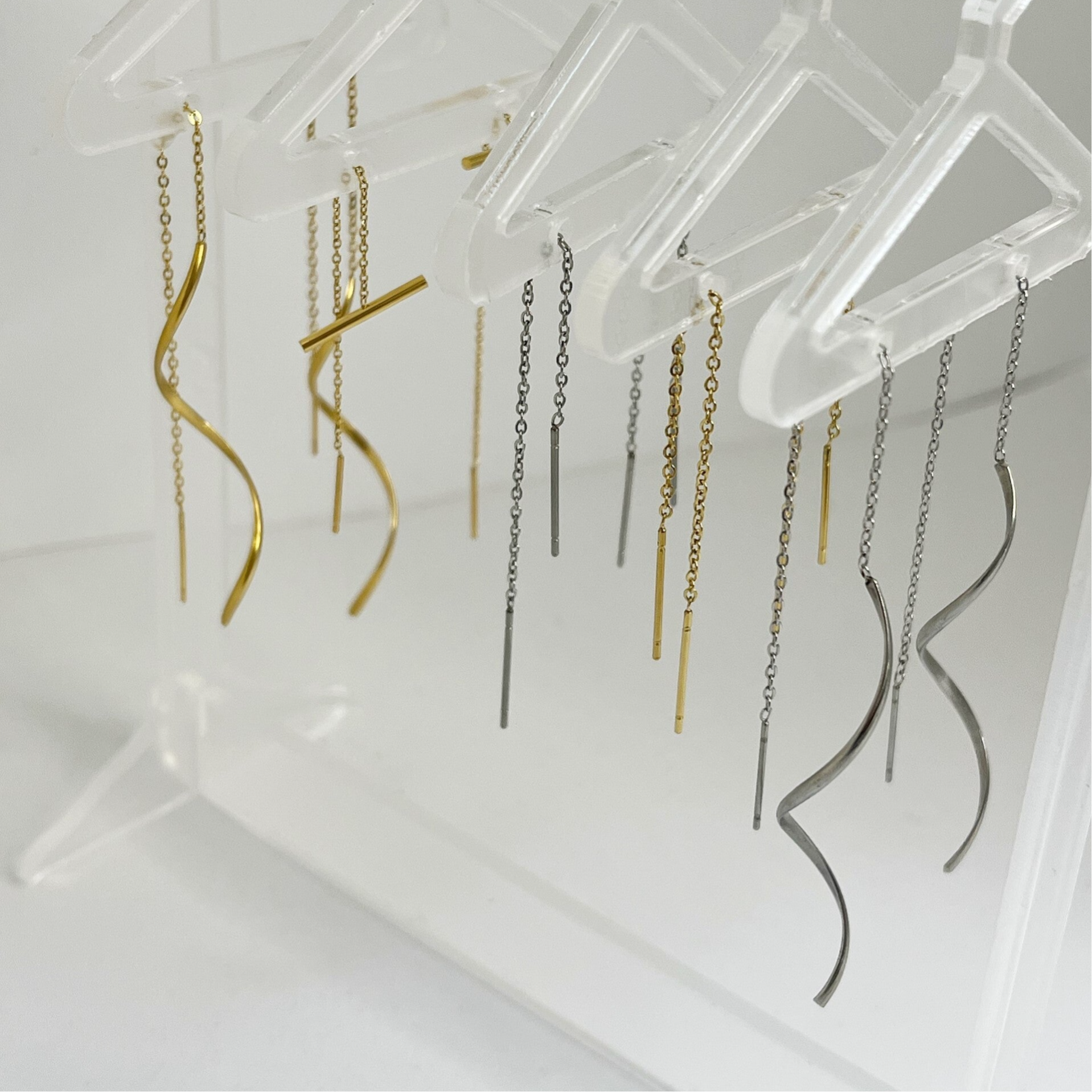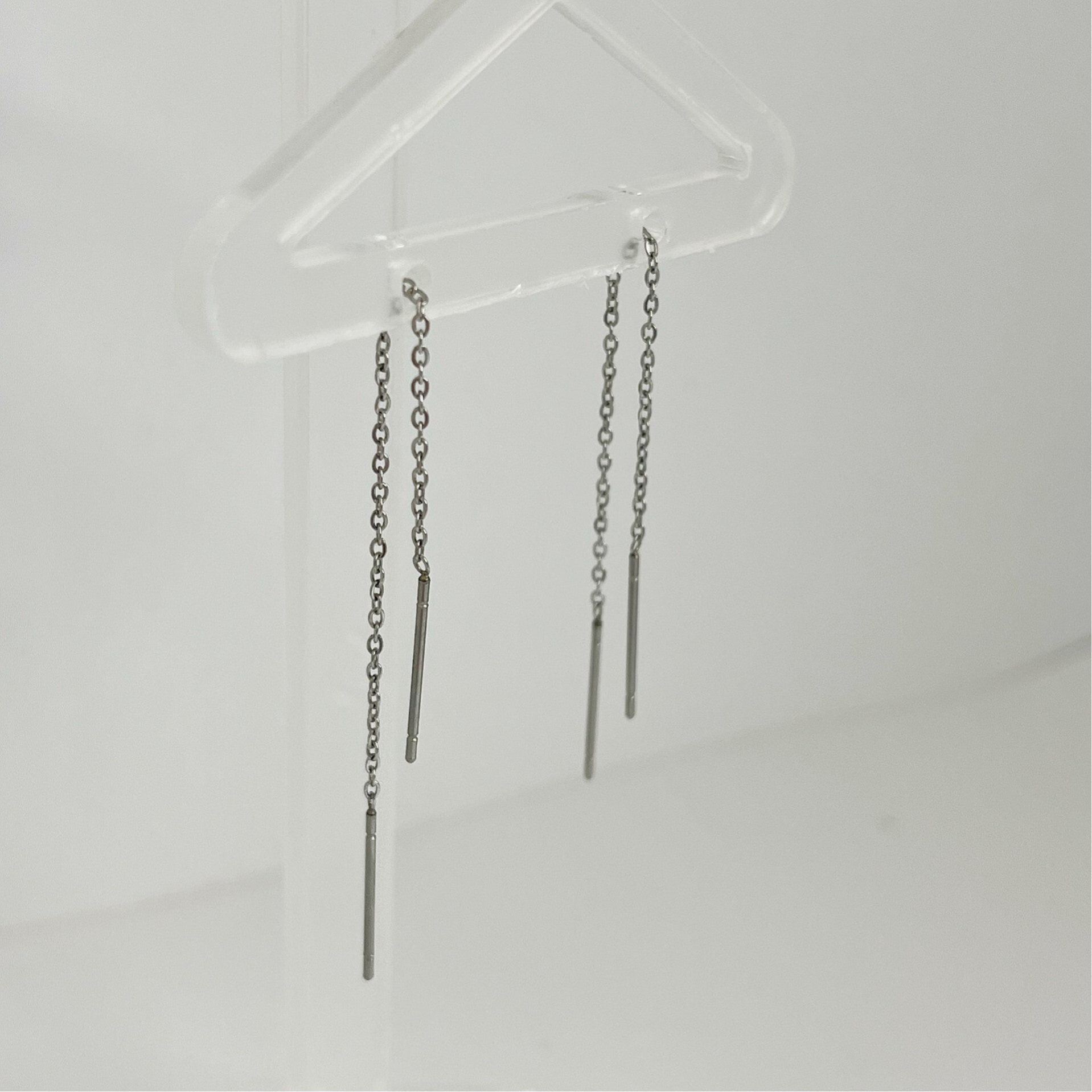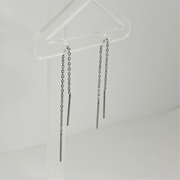 Deze mooie stainless steel doortrek oorbellen zijn erg licht van gewicht en omdat ze zo subtiel zijn ook heel erg leuk om te combineren met andere oorbellen. De oorbellen zijn 9cm lang.