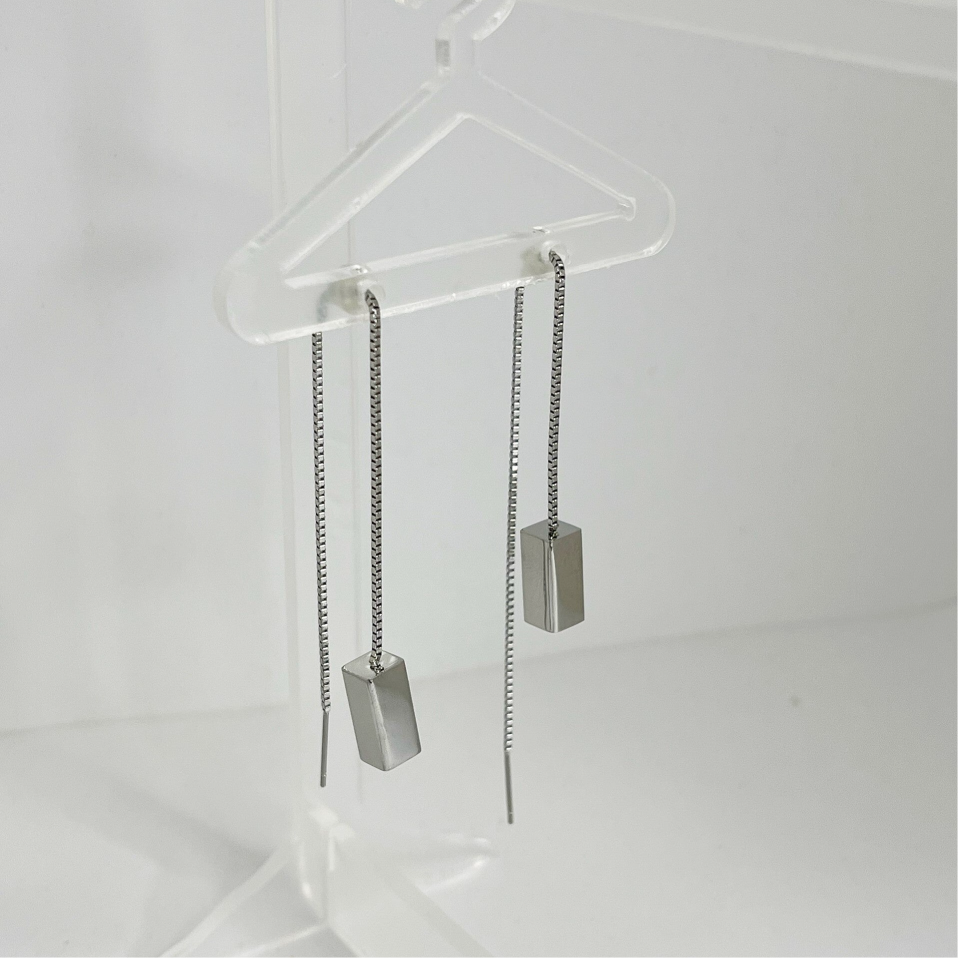 Deze mooie doortrek oorbellen zijn 13cm lang en hebben een mooie rechthoekige hanger. Deze oorbellen zijn erg leuk om zo te dragen maar ook heel mooi te combineren met meerdere oorbellen. De oorbellen zijn licht van gewicht, gemaakt van stainless steel.