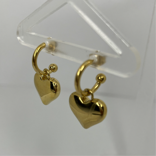 Deze oorbellen zijn gemaakt van stainless steel en zijn ongeveer 2,7 cm lang. Het ringetje is ook los te dragen en het hart bedeltje kun je ook aan een ketting dragen. Met deze oorbellen heb je dus eigenlijk 3 in 1 en kun je dus meerdere combinaties maken.