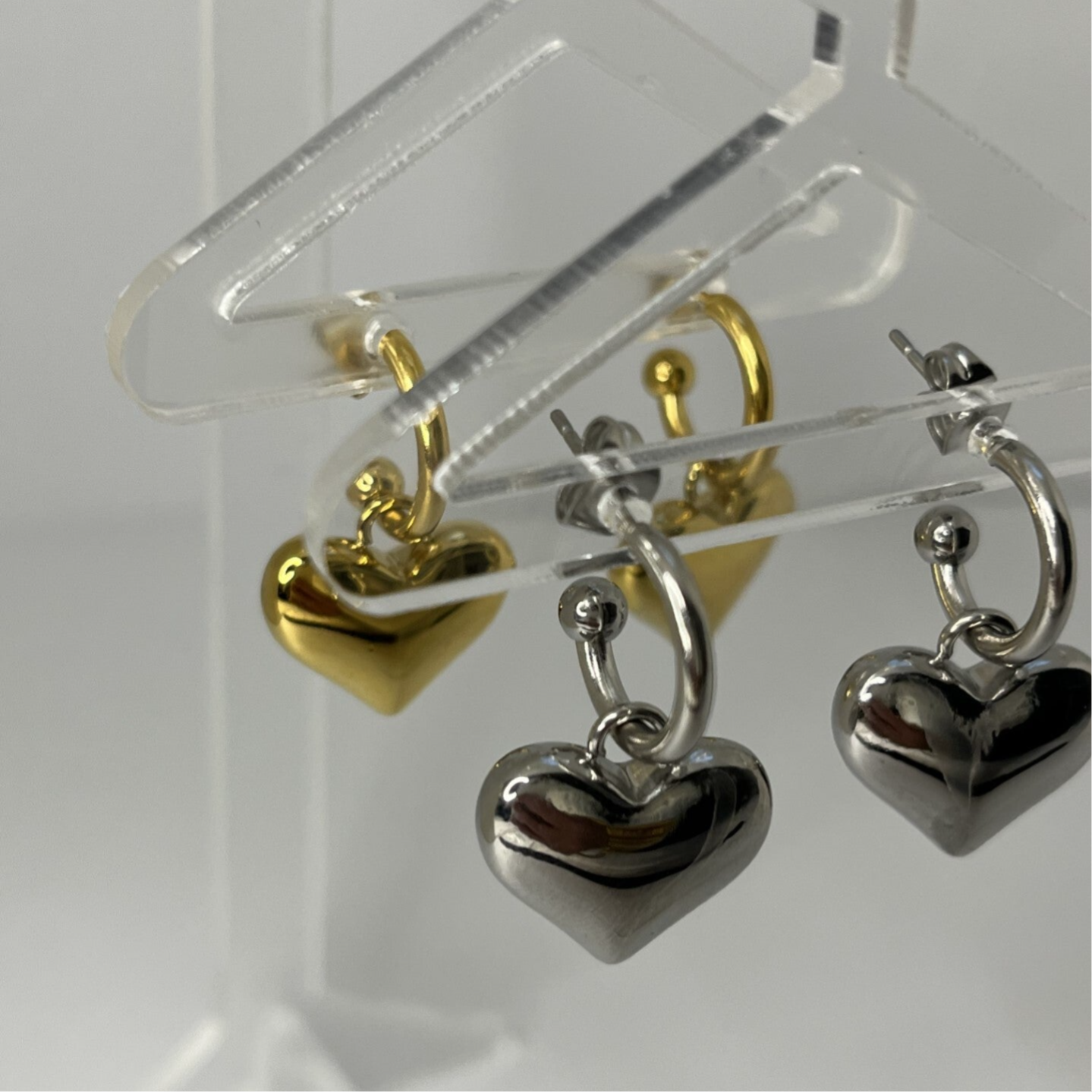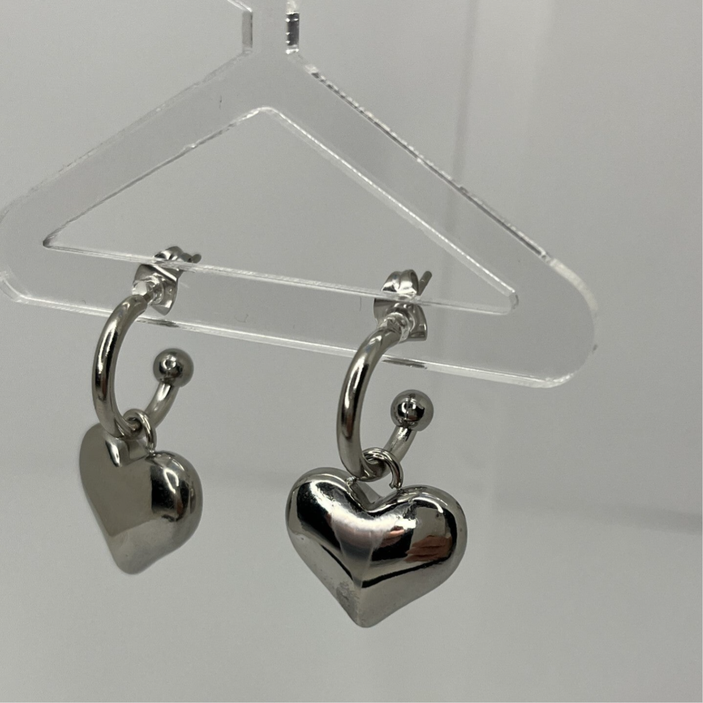 Deze oorbellen zijn gemaakt van stainless steel en zijn ongeveer 2,7 cm lang. Het ringetje is ook los te dragen en het hart bedeltje kun je ook aan een ketting dragen. Met deze oorbellen heb je dus eigenlijk 3 in 1 en kun je dus meerdere combinaties maken.