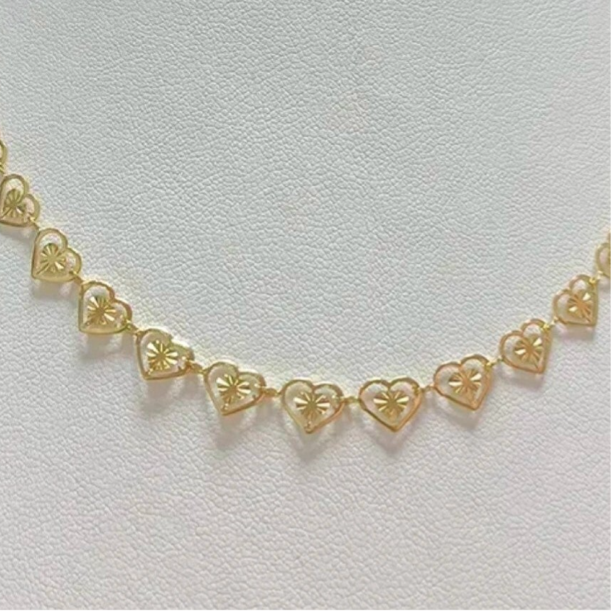 Hoe leuk is deze gouden ketting met geschakelde hartjes! Mega trendy en perfect te combineren met meerdere leuke kettingen! De ketting is daarnaast superleuk te combineren met meerdere sieraden en accessoires. De ketting is gemaakt van stainless steel, en heeft een verstelbare lengte van 40cm tot 45cm.