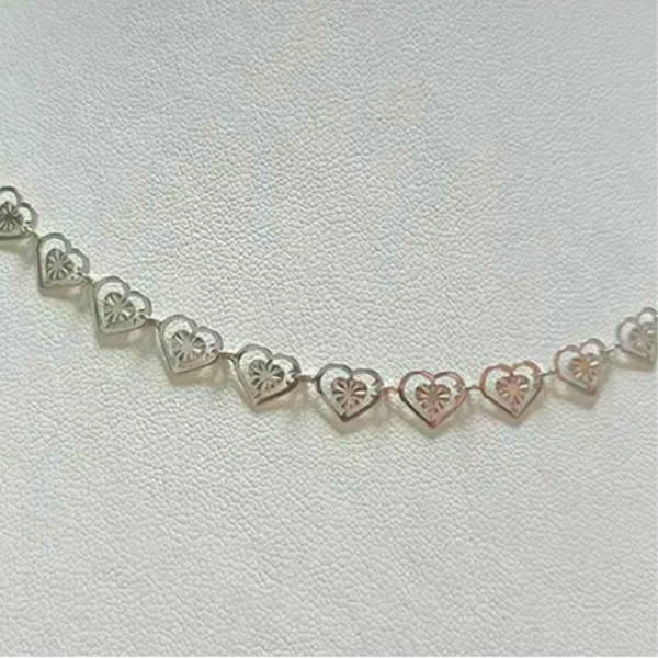 Hoe leuk is deze zilveren ketting met geschakelde hartjes! Mega trendy en perfect te combineren met meerdere leuke kettingen! De ketting is daarnaast superleuk te combineren met meerdere sieraden en accessoires. De ketting is gemaakt van stainless steel, en heeft een verstelbare lengte van 40cm tot 45cm.