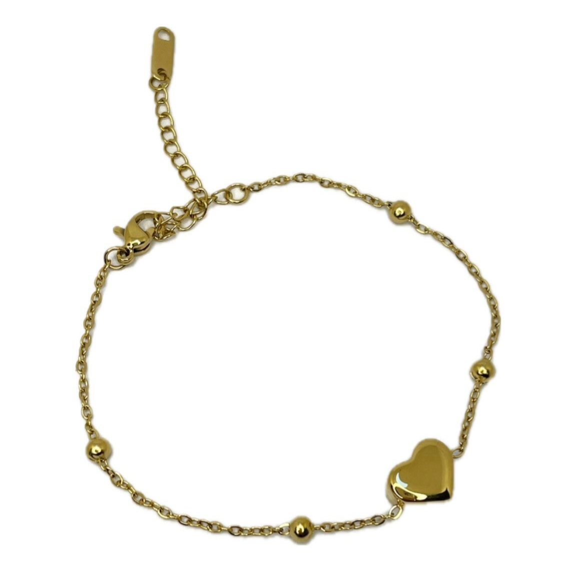 Deze armband is subtiel en gemaakt van titanium steel. De armband heeft leuke bolletjes en een hartje. Armband heeft een verstelbare sluiting is te dragen van 18 tot en met 23cm.