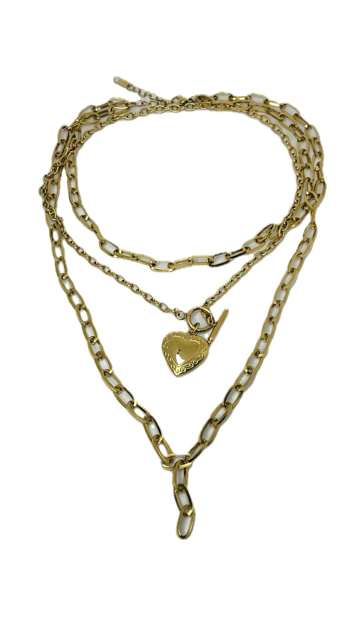 Deze prachtige ketting bestaat uit 2 kettingen maar het lijken er 3. De ketting met het hartje is een losse ketting en kan je dus ook appart van lkaar dragen, het hartje kan ook open. Deze beauty is gemaakt van stainless steel en heeft een verstelbare lengte van 39 tot 44 cm.
