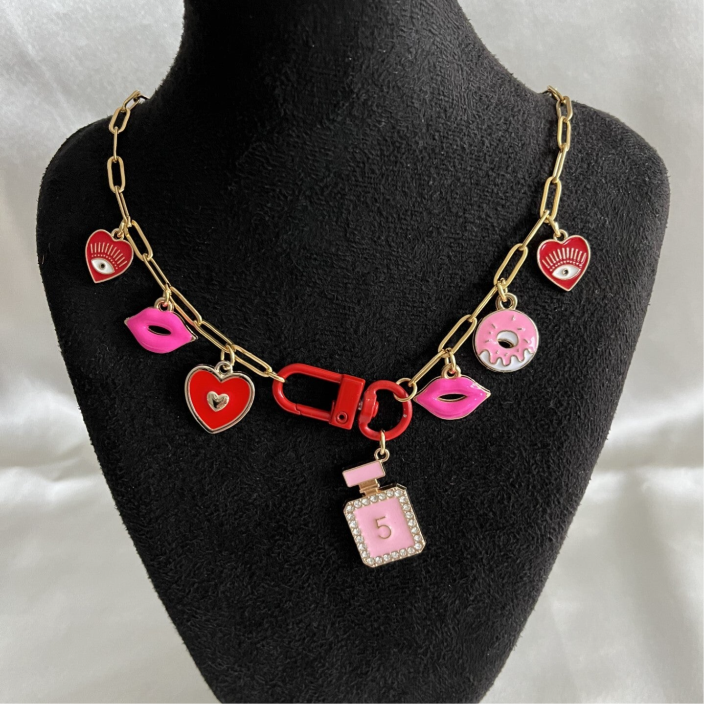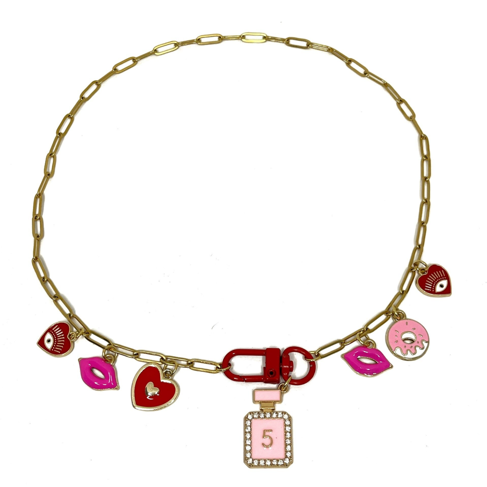 Deze mooie kleurrijke ketting is een eigen ontwerp, uniek en handgemaakt! De schakel ketting is van stainless steel, de verschillende bedels en de sluiting zijn van metaal! Vermijd daarom contact met water, zeep, parfum, bodylotion, zonnebrand of haarlak om zo lang mogelijk van je ketting te genieten. Hoe lang het sieraad mooi blijft is per persoon verschillend ook de PH-waarde van de huid kan namelijk voor verkleuring zorgen.