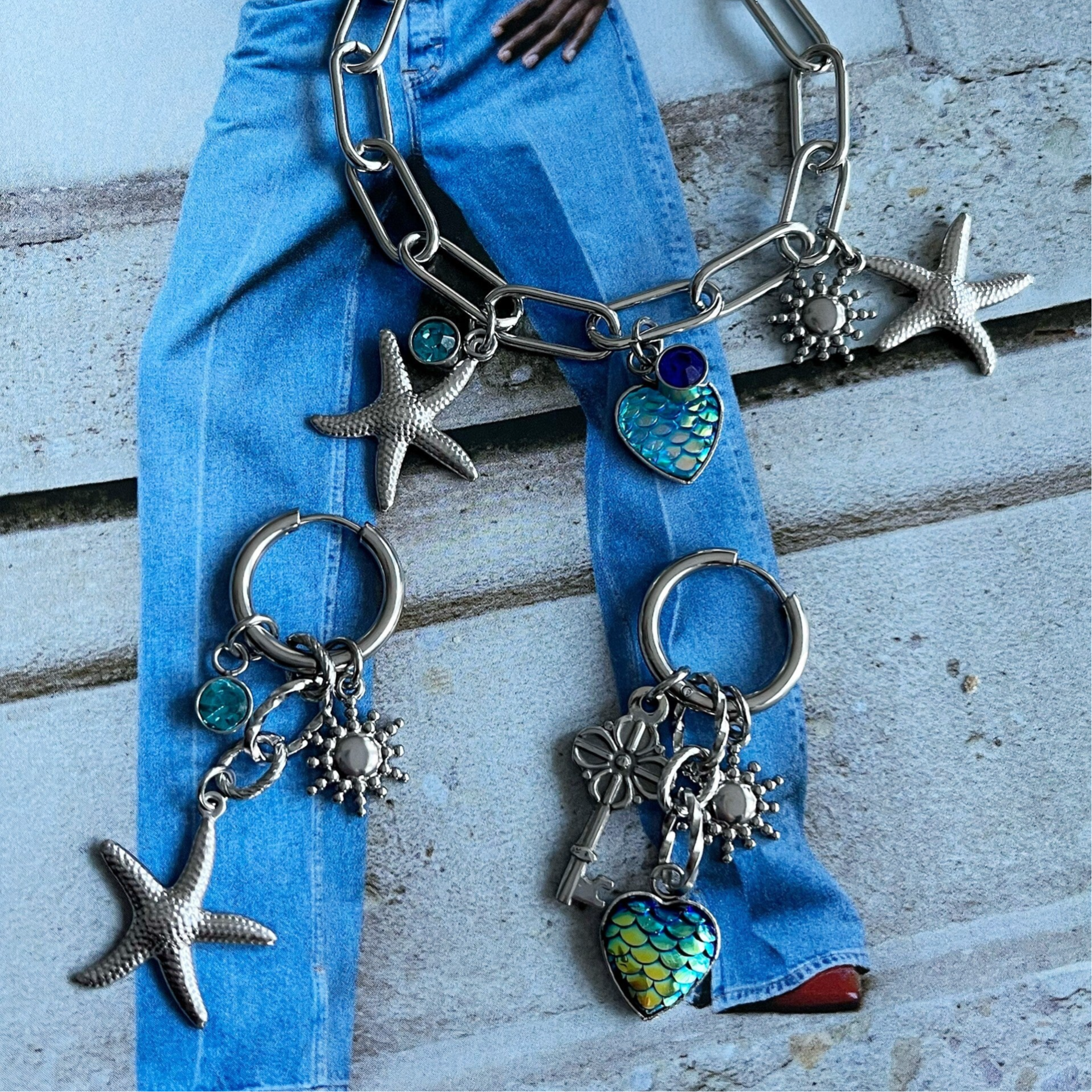 Krijg al een beetje zomer gevoel met deze leuke unieke eigen ontworpen handgemaakte oorbellen! De oorbellen hebben verschillende bedels en wil je een keer de ringetjes alleen dragen dat kan, de bedels kunnen eraf. Ook leuk om te combineren met de Azzuri armband. Deze beauty's zijn helemaal gemaakt van stainless steel en zijn licht van gewicht.