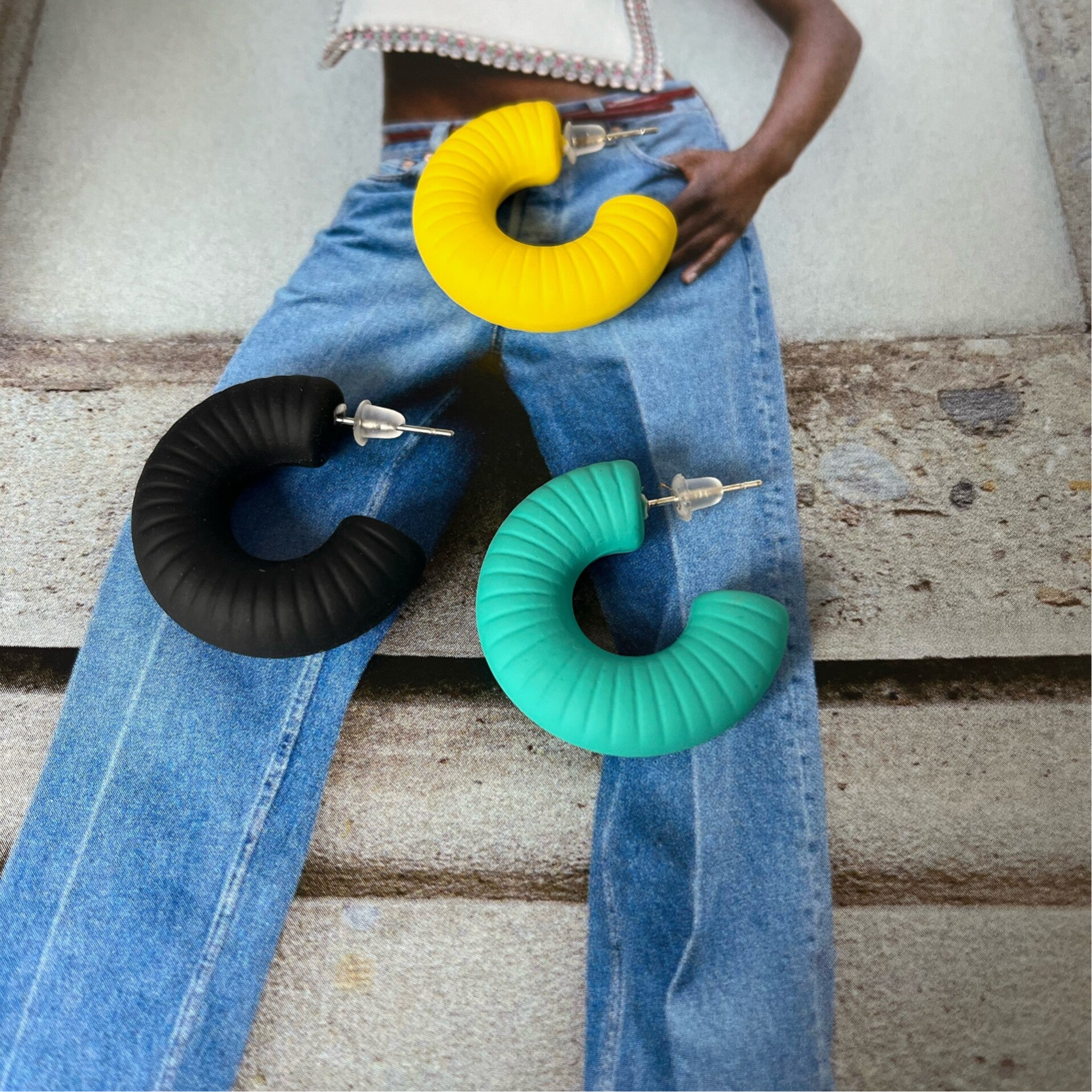 Deze oorbellen in het zwart zijn de perfecte musthaves voor feestjes en festivals om je outfit helemaal af te stylen. Ook in heel veel andere leuke kleuren verkrijgbaar! De oorbellen zijn daarnaast superleuk te combineren met meerdere andere sieraden. De oorbellen zijn gemaakt van acryl en de steker is stainless steel, afmeting 2,5 cm. Licht van gewicht!