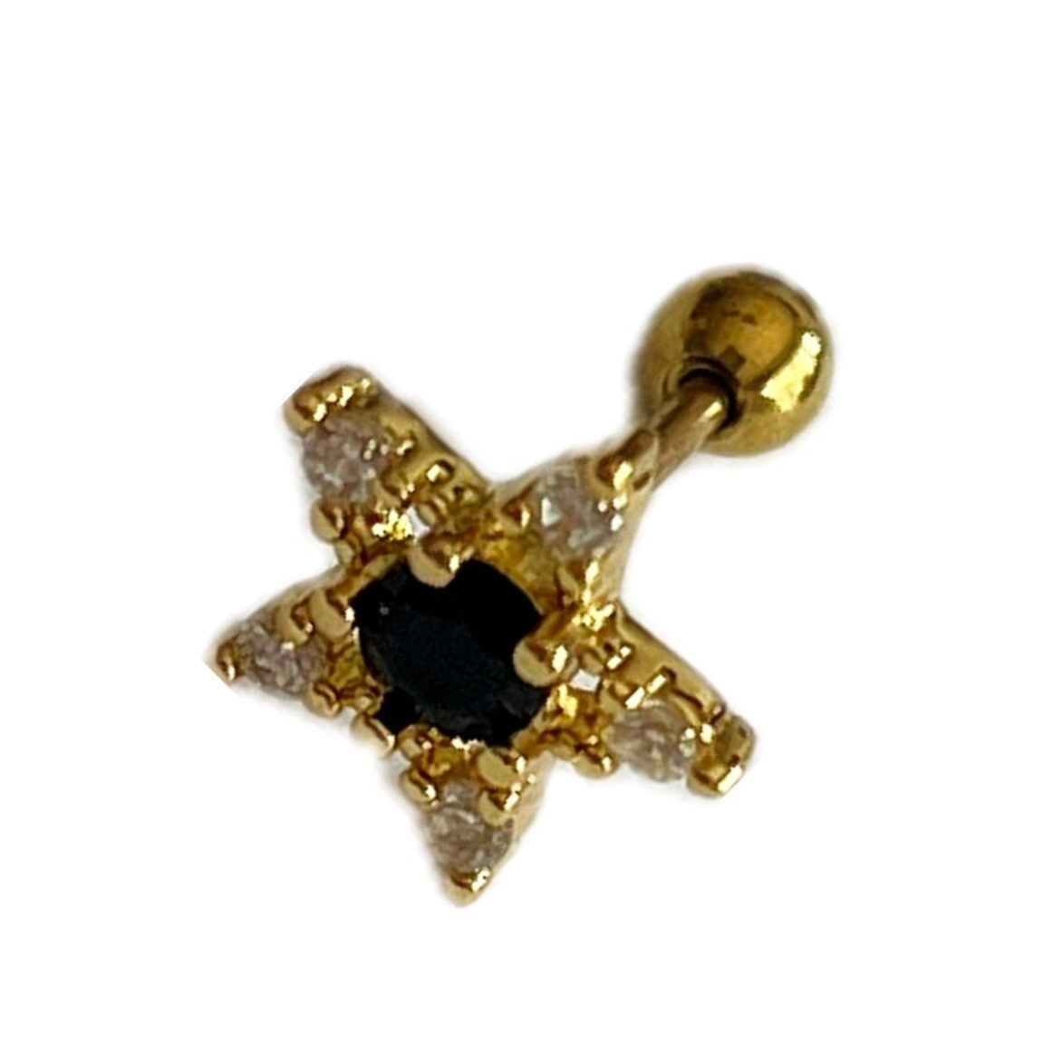 Deze mooie piercing in de vorm van een ster met strass en zwart is de perfecte accessoire, erg leuk om met andere sieraden te combineren.