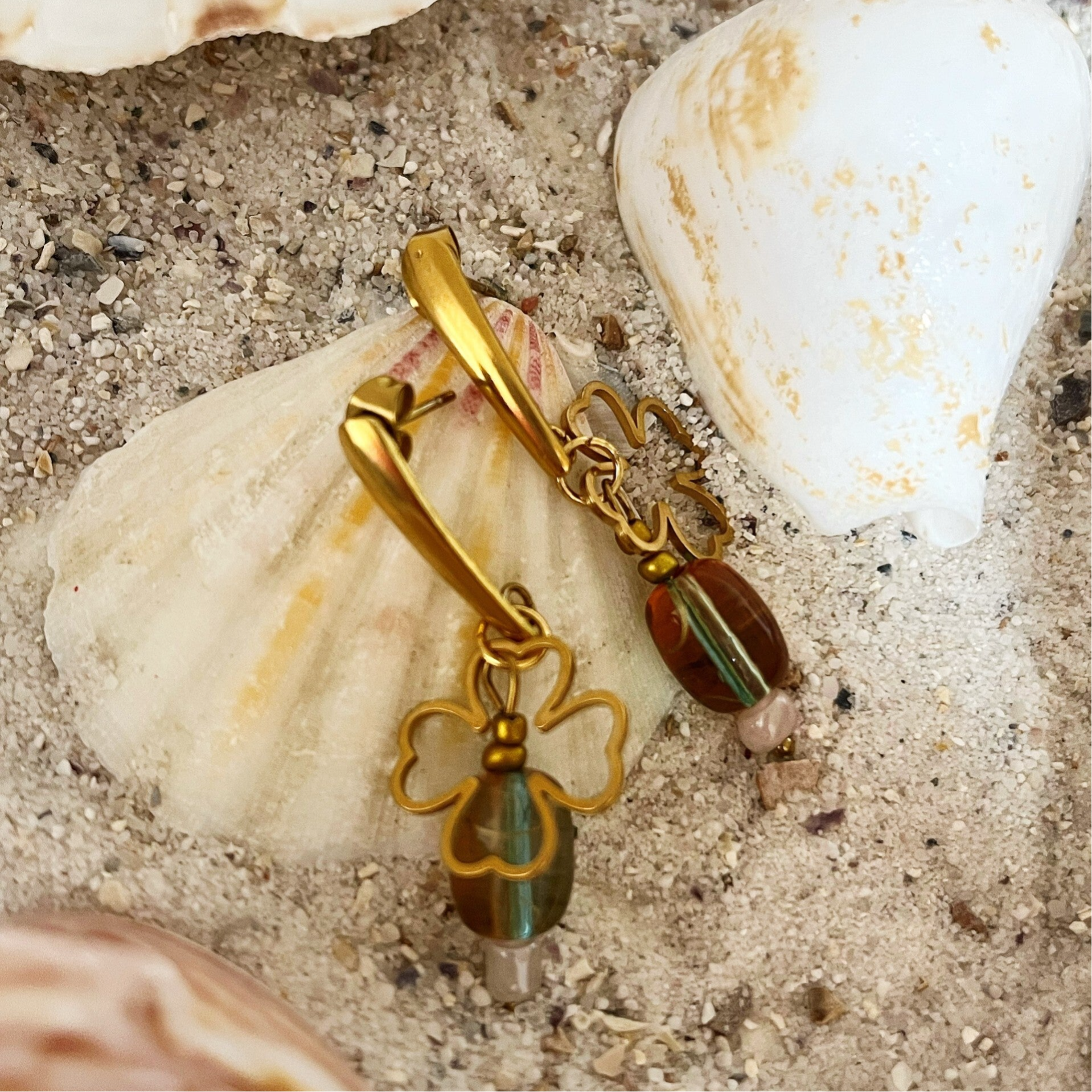 Maak je outfit helemaal af met onze prachtige sunset ketting versierd met een mooie bloem. Shelpen, zeesterren, bloemen, vlinders de trend van deze zomer. Deze ketting is eigen ontwerp en handgemaakt dus uniek, gemaakt van stainless steel en glas kralen. Verstelbare lengte van 41 tot 46 cm. Leuk om met bijpassende sieraden te combineren en zo jouw outfit helemaal af te stylen.