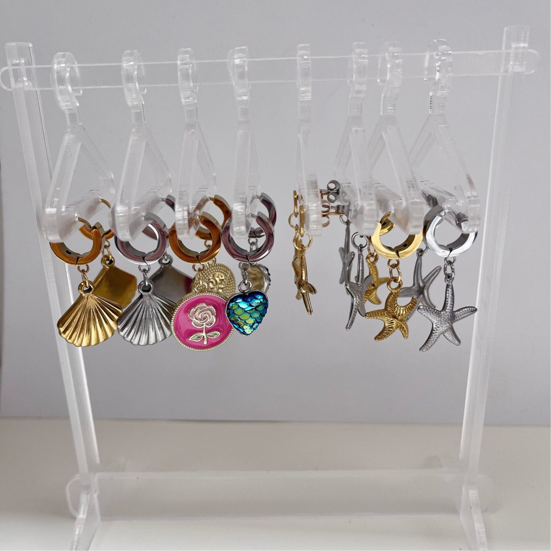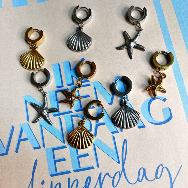 Deze leuke kleine ringetjes met zeester hanger zijn mooi om zo te dragen maar ook super om met andere oorbellen te combineren! Deze beauty's zijn gemaakt van stainless steel en zijn licht van gewicht, afmeting 3,5cm.