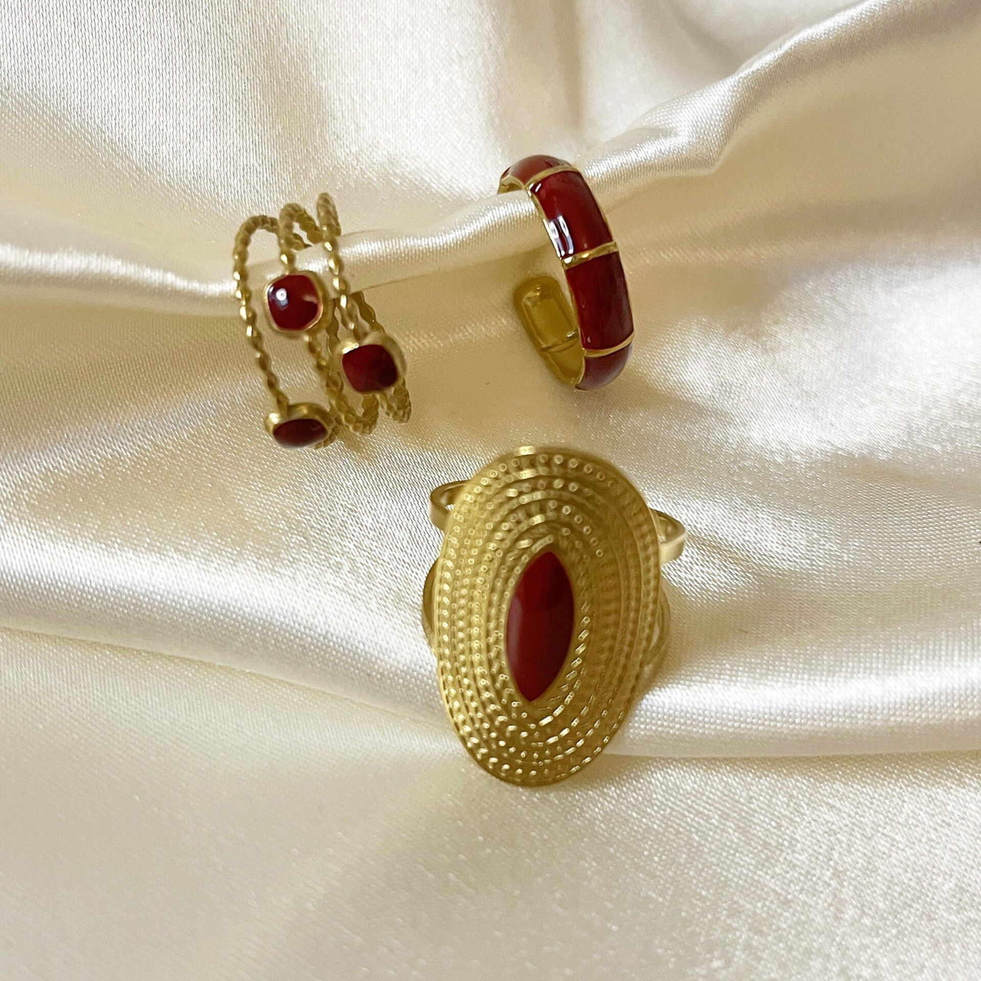 Deze mooie ring is gemaakt van stainless steel waardoor deze niet verkleurd. De ring heeft leuke vierkante burgundy details en is verstelbaar. Deze ring past om iedere vinger!