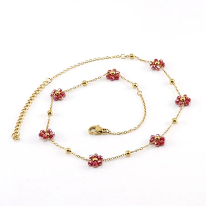 Deze stainless steel ketting heeft donker rode kraaltjes in de vorm van een bloemetje. Ook leuk om te cobineren met een subtiele ketting, door verschillende lengtes kettingen te dragen kun je eindeloos blijven combineren. Dankzij de verstelbare sluiting kan het sieraad gedragen worden vanaf 37 tot en met 42 cm.