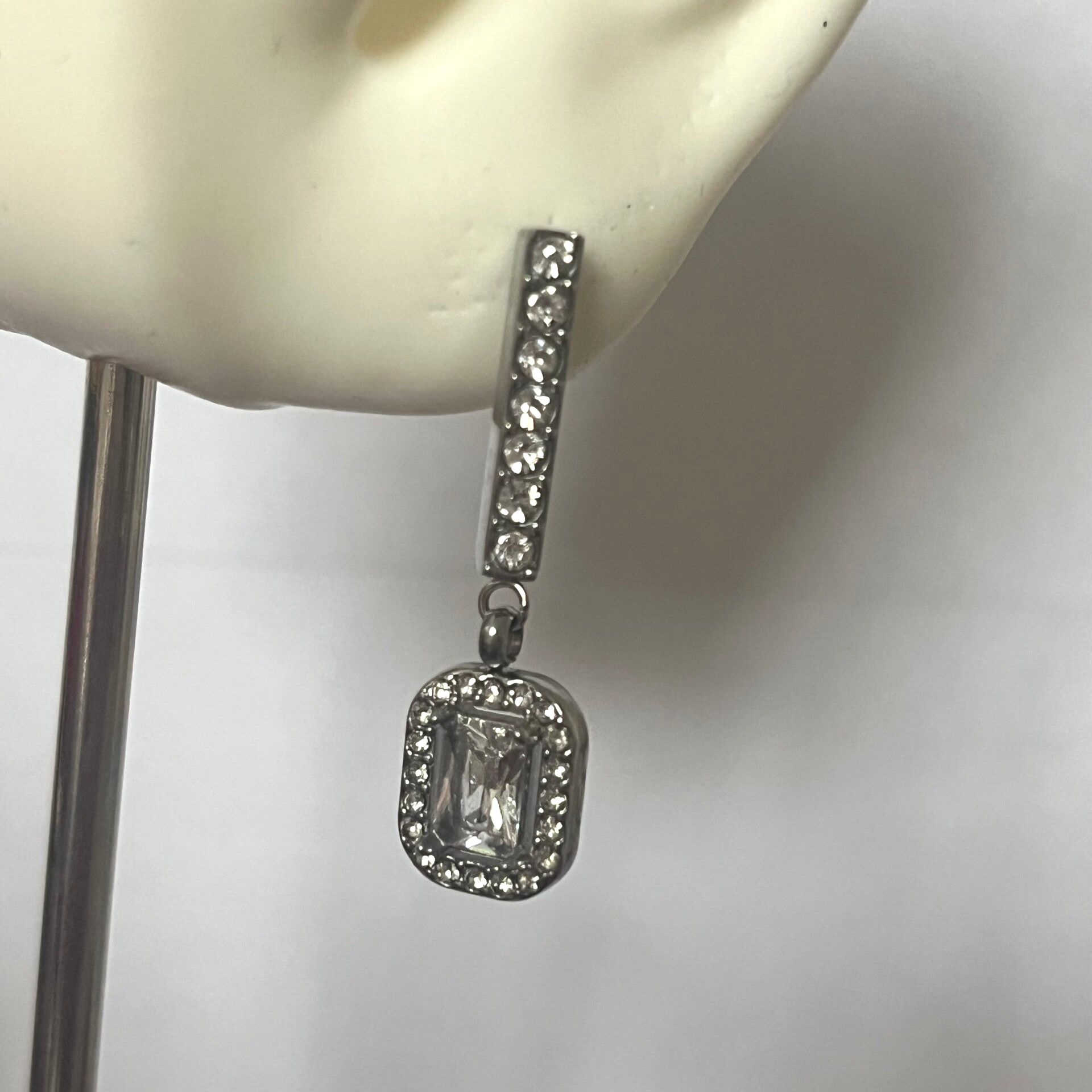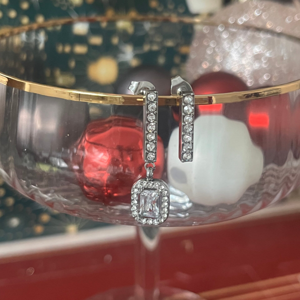 Deze super mooie oorbellen hebben een leuk detail met strass stenen en zirkoon. Deze oorbellen zijn overal mee te combineren zo wel chique als casual te stylen. Gemaakt van stainless steel en zijn licht van gewicht. Afmeting 3 cmx1,1cm