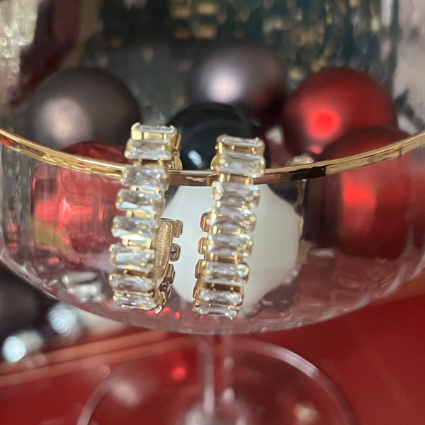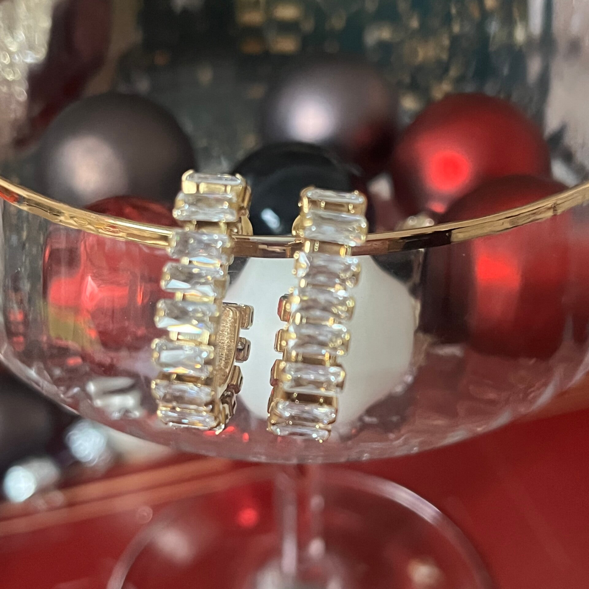 Hoe leuk zijn deze u vormige oorbellen met zirkoon steentjes! Deze oorbellen maken jouw feestelijke outfit helemaal af, gemaakt van stainless steel afmeting 2,5 cm