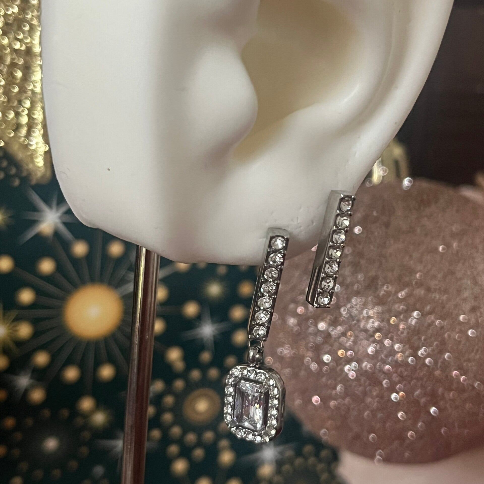 Deze leuke langwerpige oorbellen hebben een leuk detail met strass steentjes. Deze oorbellen zijn overal mee te combineren zo wel chique als casual te stylen. Gemaakt van stainless steel en zijn licht van gewicht. Afmeting 1,5 cm