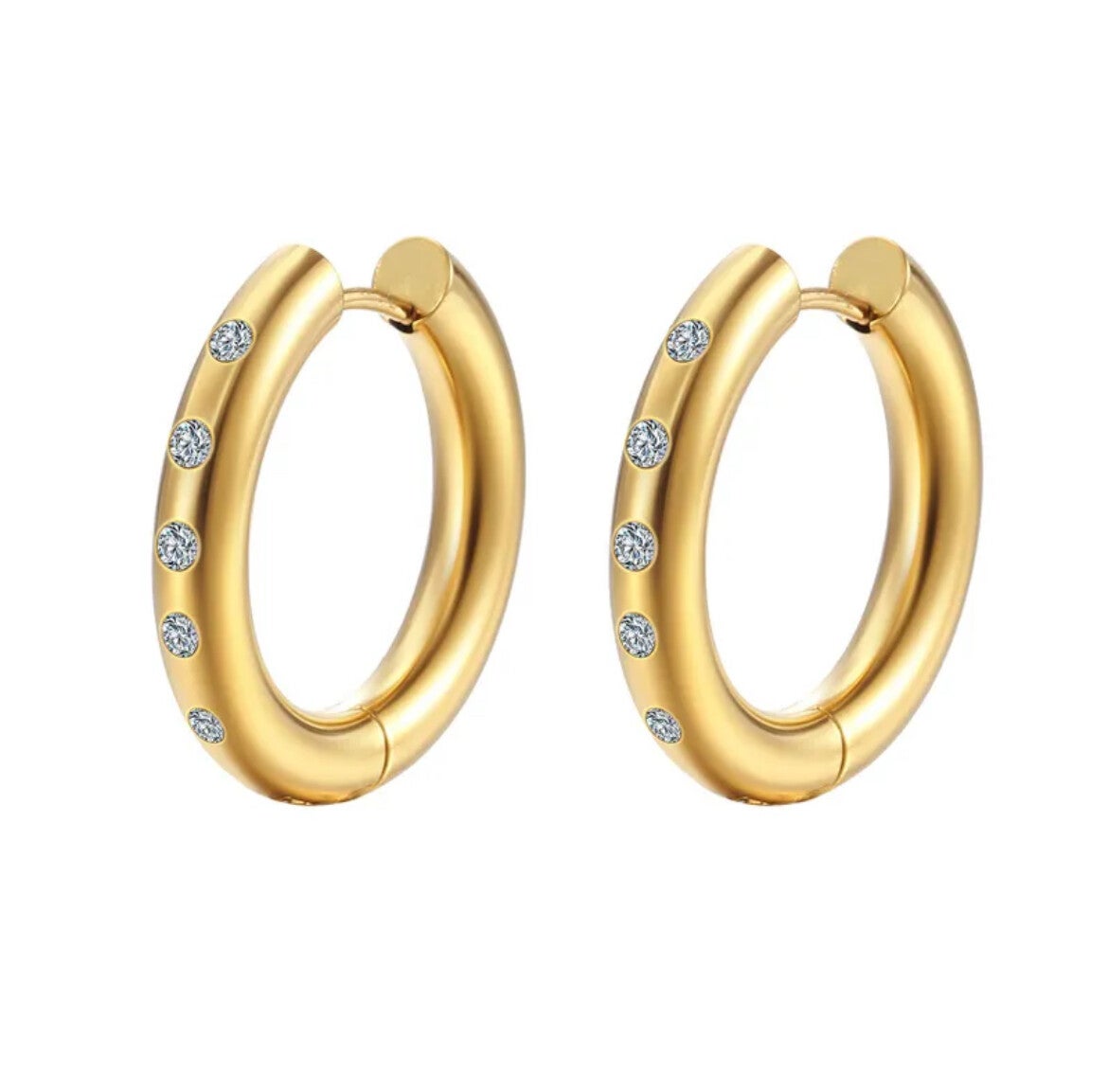Hoe fantastisch zijn deze oorbellen! Deze hoops hebben mooie strass steentjes en geven daardoor net dat beetje extra aan jouw party outfit. Ze zijn de perfecte musthaves doordat ze perfect te combineren zijn met elk paar andere oorbellen, ideaal! De oorbellen zijn daarnaast superleuk te combineren met andere sieraden. De oorbellen zijn gemaakt van stainless steel en hebben een afmeting van 2,4 cm.