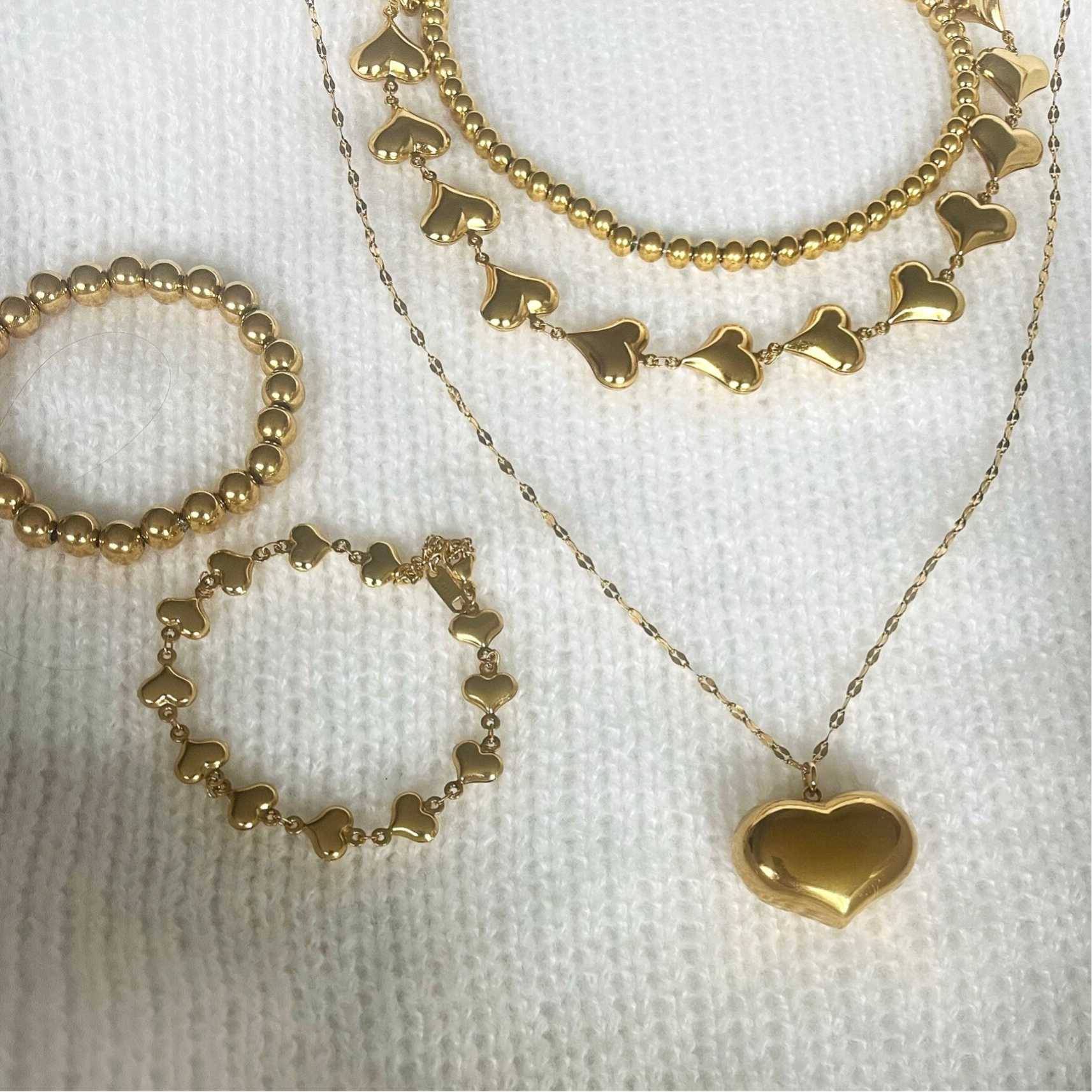 Deze armband is echte liefde, de hart armband is gemaakt van stainless steel en ondanks alle hartjes licht van gewicht. De armband heeft een verstelbare lengte van 18 cm tot 23 cm.