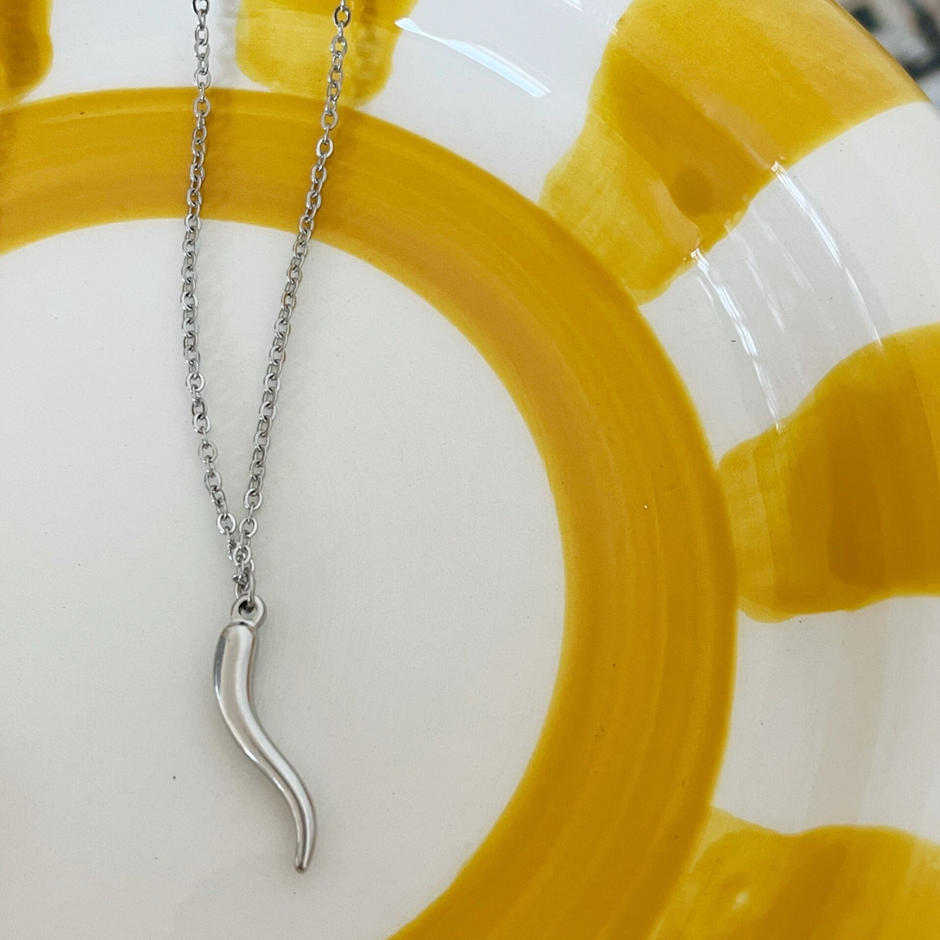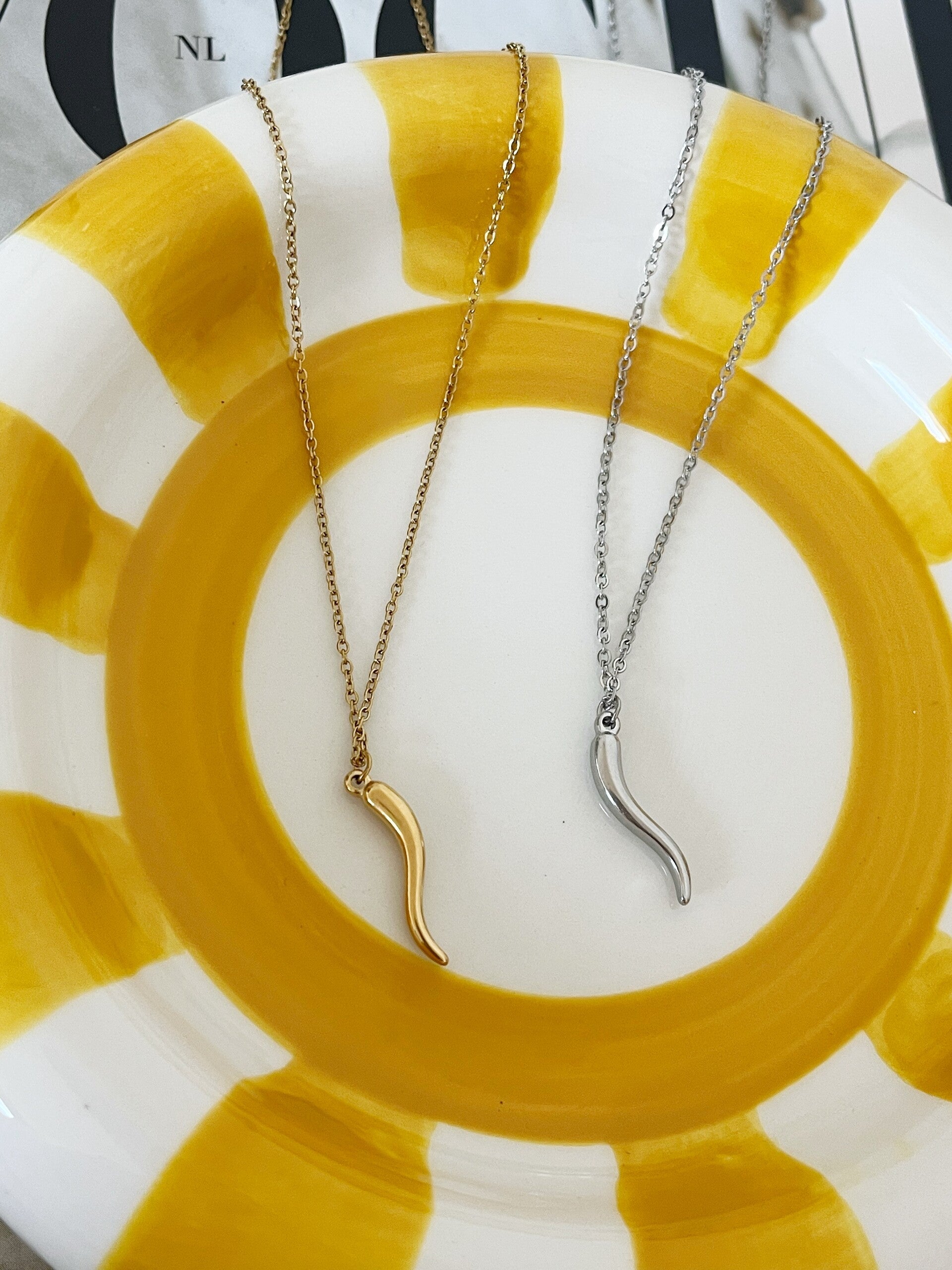 Ketting met peper bedel leuk als subtiel kettinkje maar ook heel leuk om met meerdere kettingen en verschillende lengtes te combineren. Gemaakt van stainless steel bedel is 2,4 cm en de ketting is verstelbaar in lengte van 40 cm t/m 44 cm.
