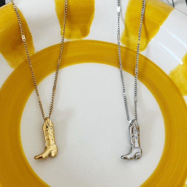 Ketting met cowboy boots hanger gemaakt van stainless steel. Super leuk om met meerdere sieraden te combineren. De bedel is 2 cm en de ketting is iets langer dan de meeste kettingen, verstelbaar van 45 cm t/m 50 cm.