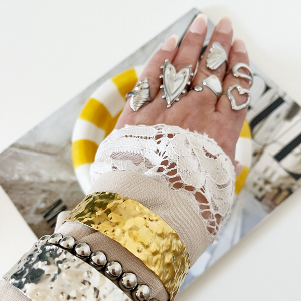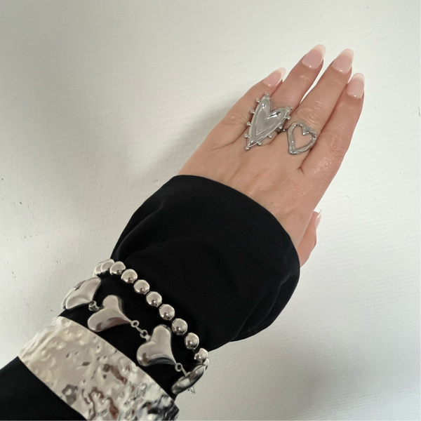 Chunky, big dat is de trend voor dit seizoen! Grote opvallende sieraden mogen niet ontbreken in jouw sieraden collectie. Met deze grote hart ring voldoe jij aan alle mode trends en style jij iedere outfit helemaal af. Deze ring is verstelbaar en stainless steel, afmeting hart 3,5 cm.