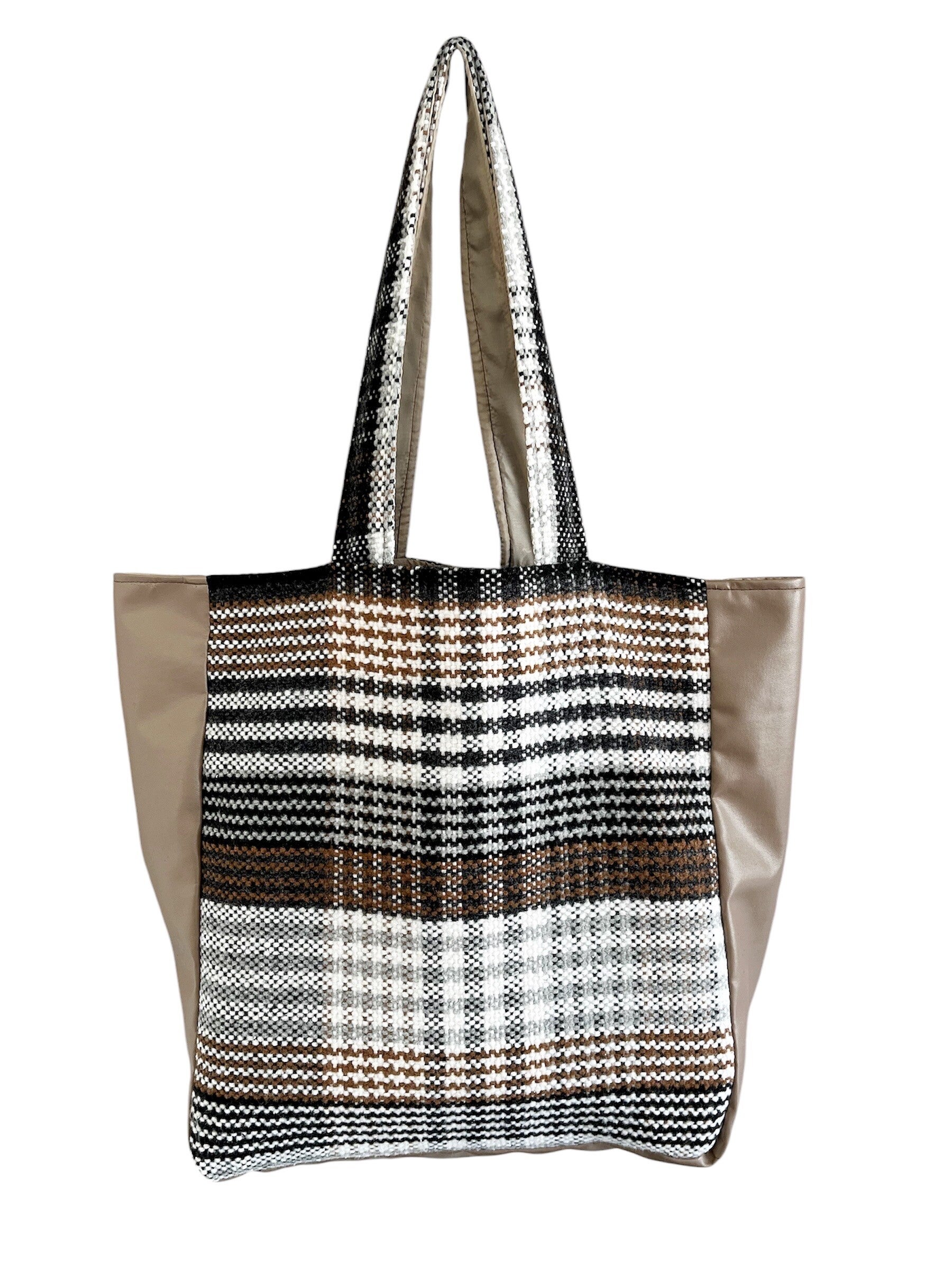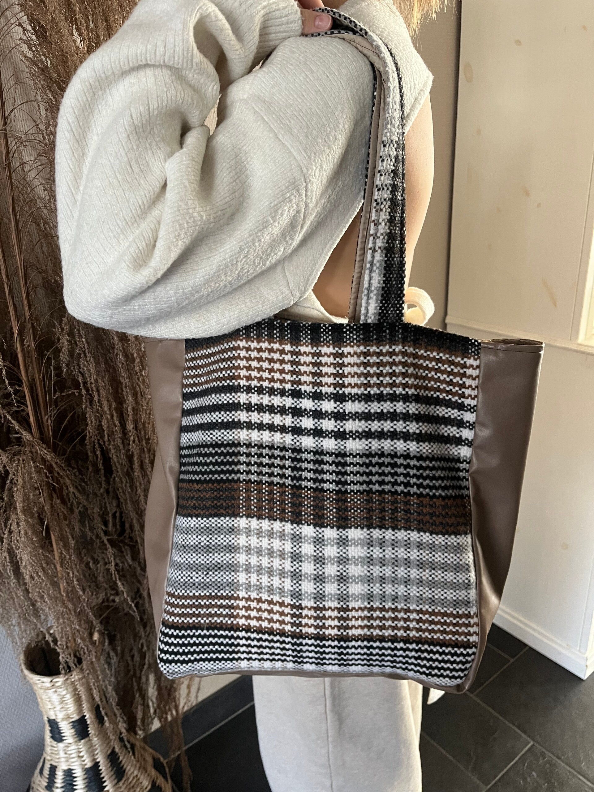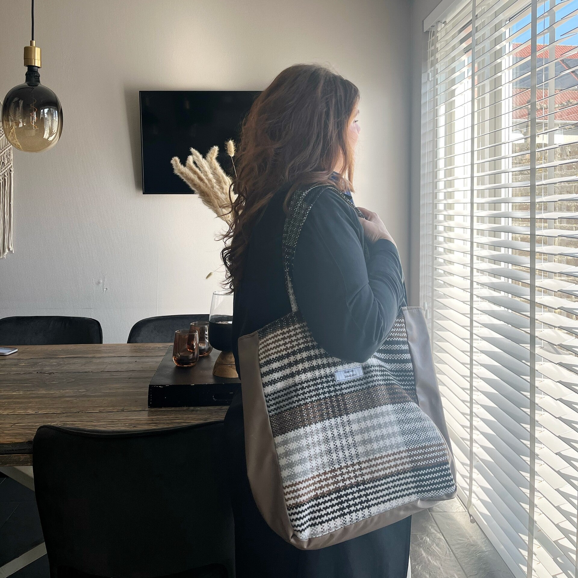 Nooit meer een saaie tas of een tas die iedereen al heeft? kies dan voor deze mooie eigen ontwerp totebag met geruit Patroon. Deze shopper biedt genoeg ruimte voor al je benodigdheden of je nu een drukke dag hebt of een ontspannen uitje, deze tas is super handig. De tas is gemaakt in een fijn formaat waardoor al jouw handbagage mee te nemen is en ook handig als werktas gebruikt kan worden.
