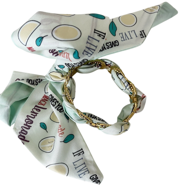Hoe mooi is deze mooie armband en het is ook nog eens 2 in 1 en maak jij je outfit gelijk helemaal amazing. Deze bangle armband heeft schakels waar een leuk sjaaltje door heen is geweven, natuurlijk kun je het ook los van elkaar dragen. Het sjaaltje is ook mooi om in je haar of je nek te dragen maar ook leuk aan een tas. Armband is gemaakt van stainless steel en heeft een afmeting van 6 cm.