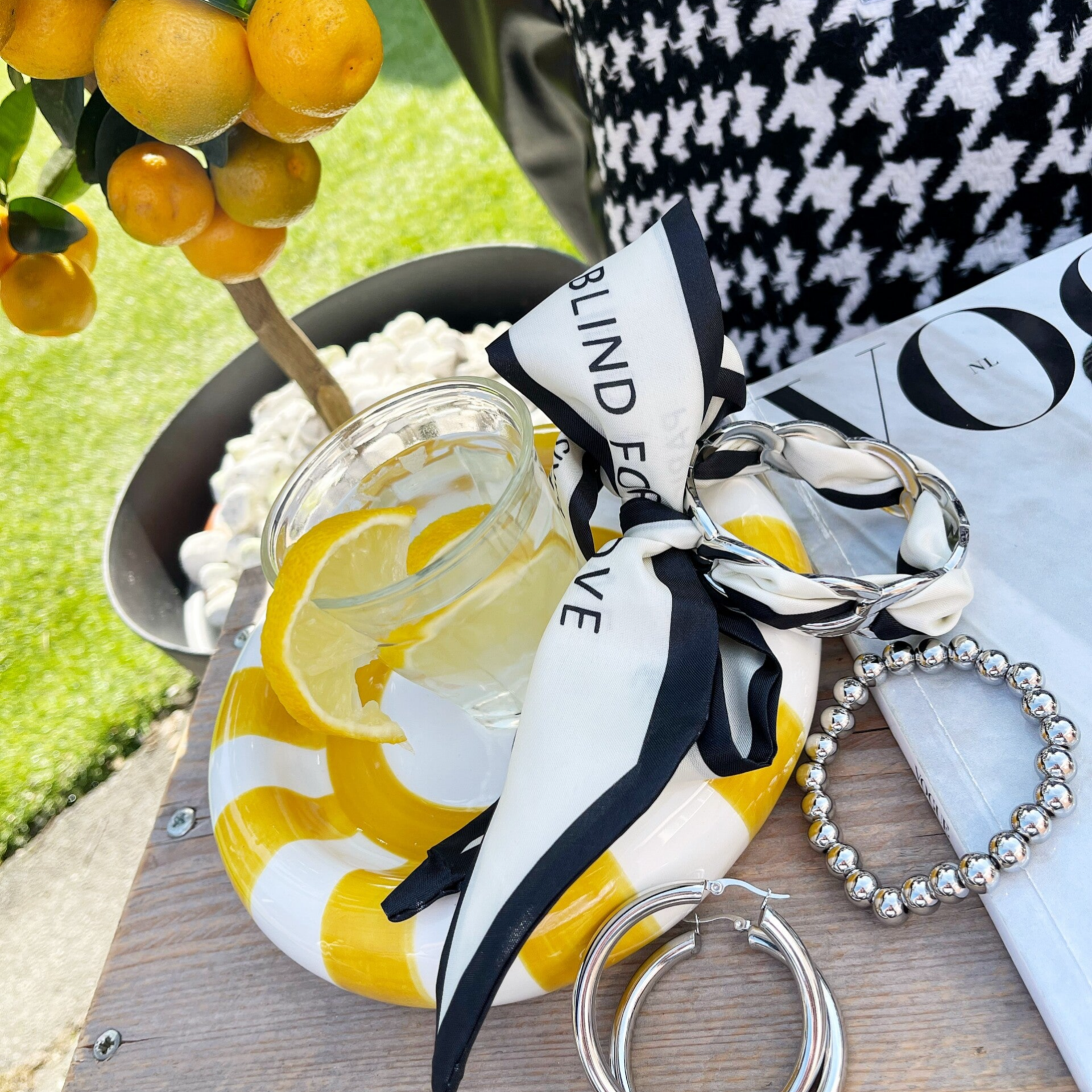 Hoe mooi is deze mooie armband en het is ook nog eens 2 in 1 en maak jij je outfit gelijk helemaal amazing. Deze bangle armband heeft schakels waar een leuk sjaaltje door heen is geweven, natuurlijk kun je het ook los van elkaar dragen. Het sjaaltje is ook mooi om in je haar of je nek te dragen maar ook leuk aan een tas. Armband is gemaakt van stainless steel en heeft een afmeting van 6 cm.