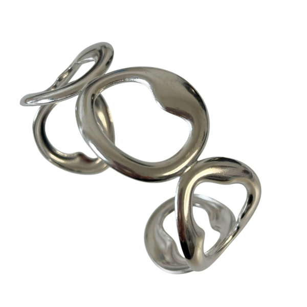 Ook zo verliefd op deze mooie bangle armbanden? Voeg deze must haves toe aan jouw collectie!. De armband is gemaakt van stainless steel. De afmeting van de armband is 6 cm en 3 cm breed.