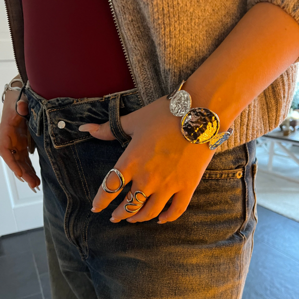 Ook zo verliefd op deze mooie bangle armbanden? Voeg deze must haves toe aan jouw collectie!. De armband is gemaakt van stainless steel. De afmeting van de armband is 6 cm en 3,2 cm breed.