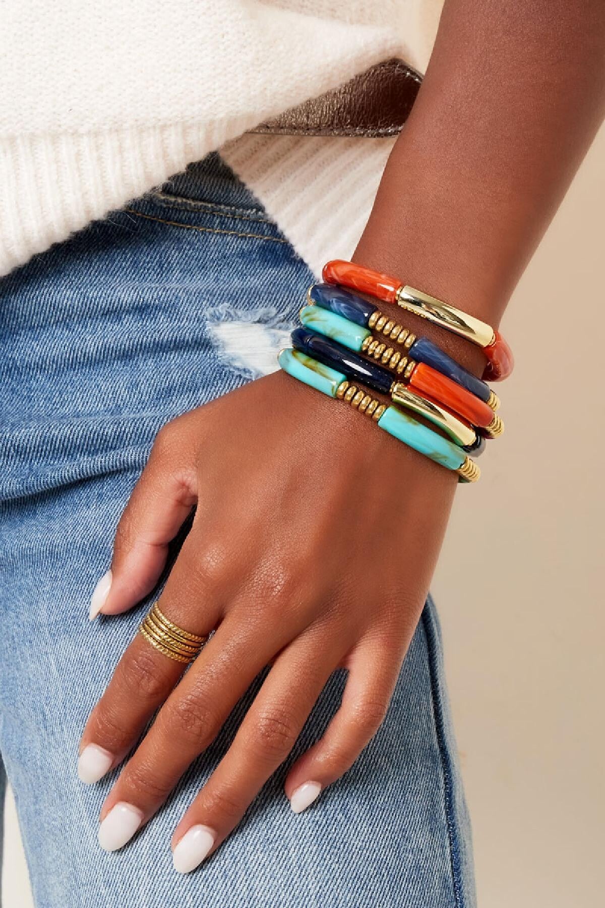 Trend alert!! Shop deze populaire tube armbanden in verschillende kleuren! Deze tube armbanden zijn leuk om meerdere tegelijk te dragen of te combineren met andere armbanden. De armband is gemaakt van acryl, polymeerklei en hematiet en heeft een afmeting van 19,5 cm.