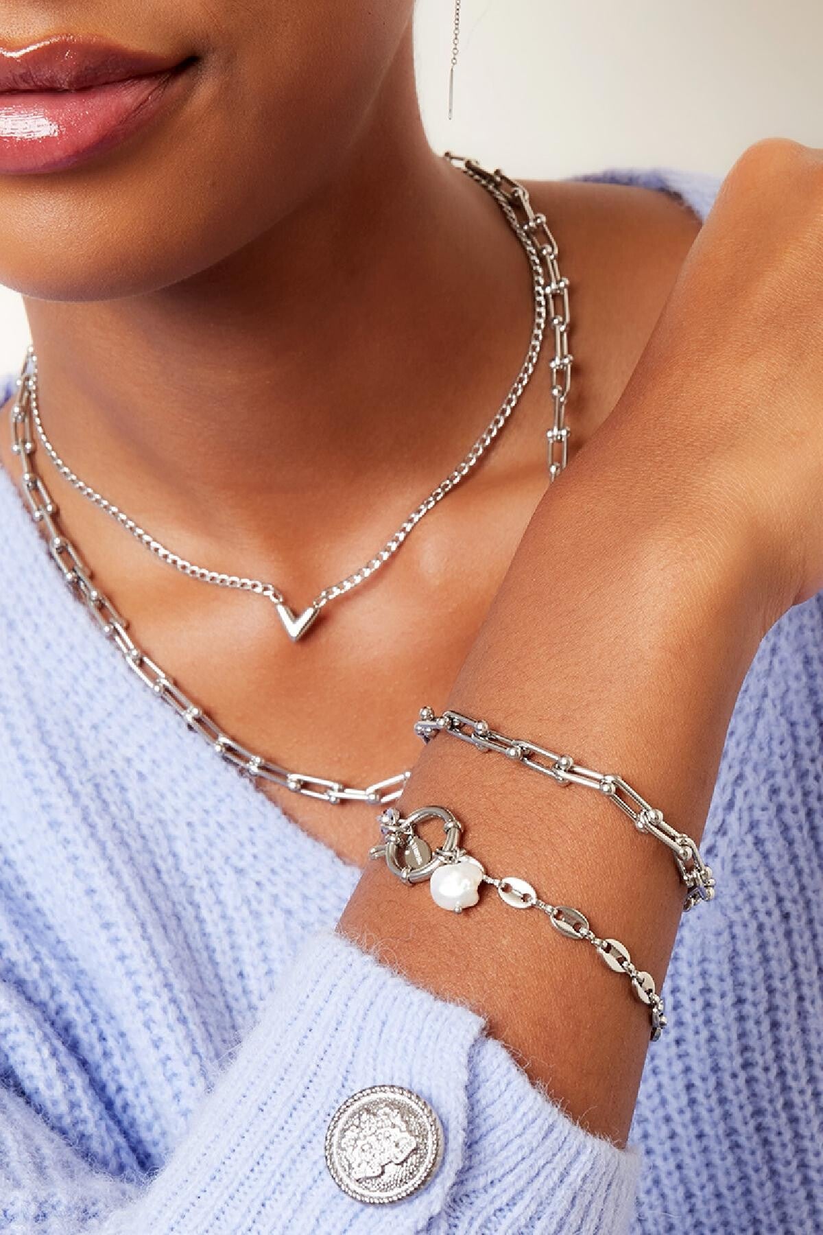 Stainless steel, armband heeft een verstelbare sluiting waardoor de armband vanaf 16 tot en met 19 cm te dragen is.